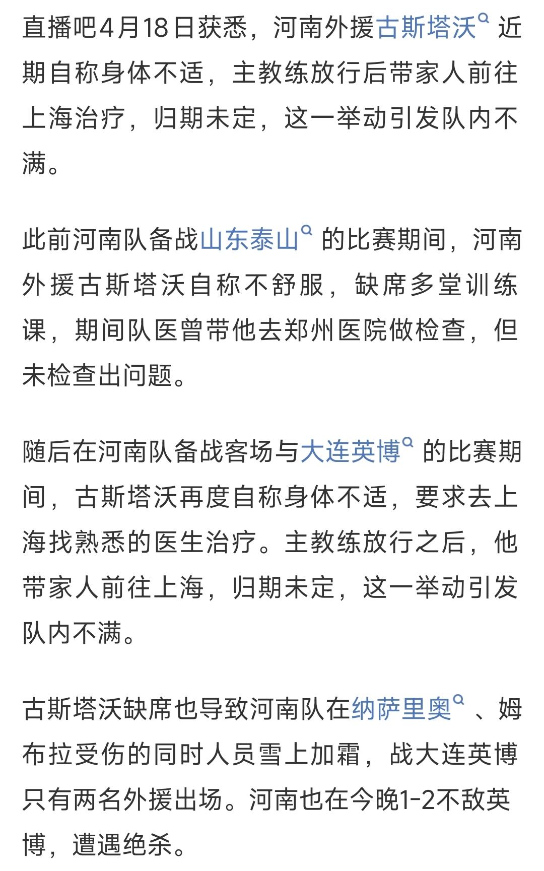 人在曹营心在汉?河南队新援古斯塔沃,究竟是态度问题,还是身体确实有伤。球迷:回海港吧,最差引援。