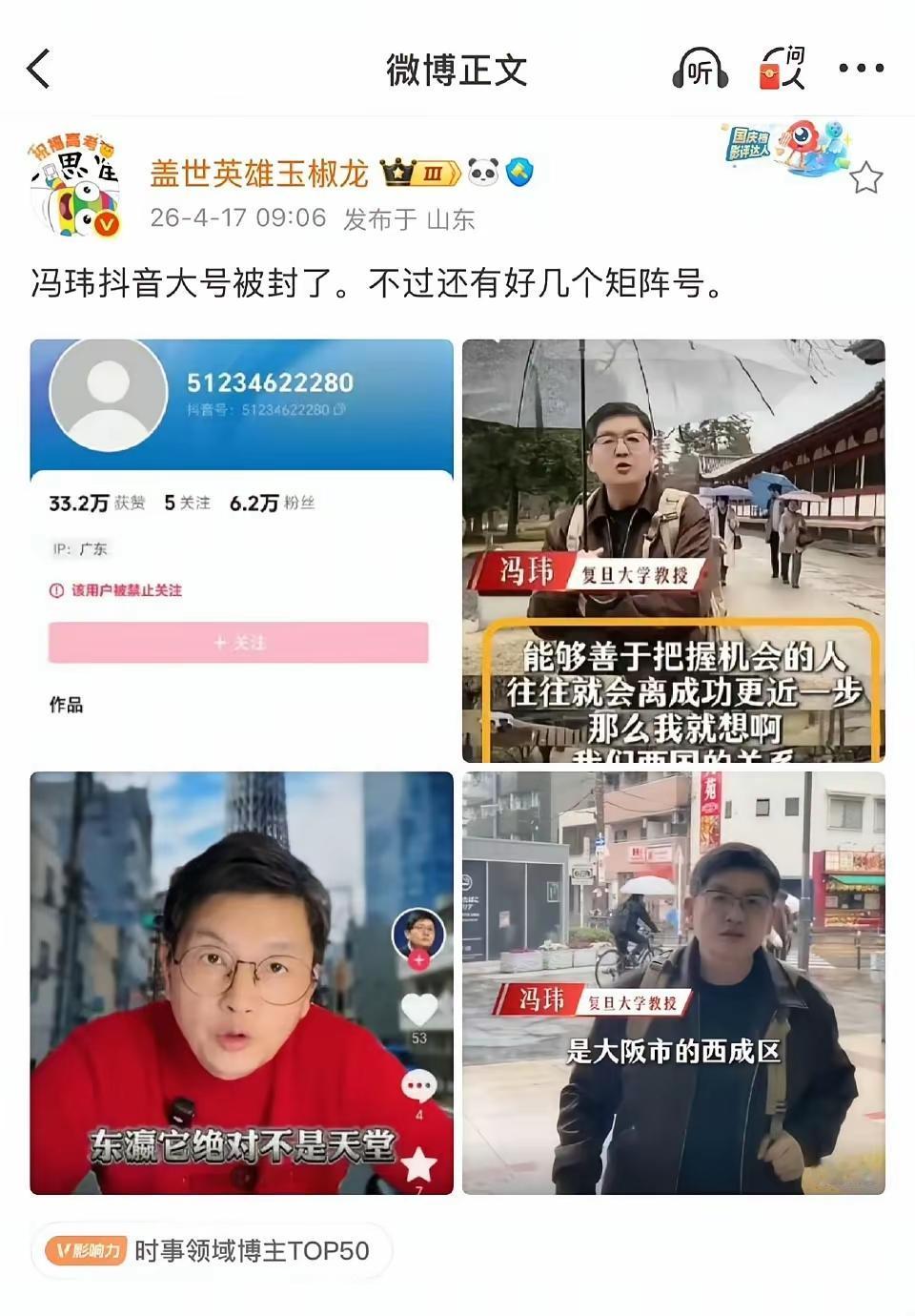 活该啊!吃里扒外的复旦冯大教授,终于被禁言了! 这家伙前脚跟咱妈对着干,跑去日