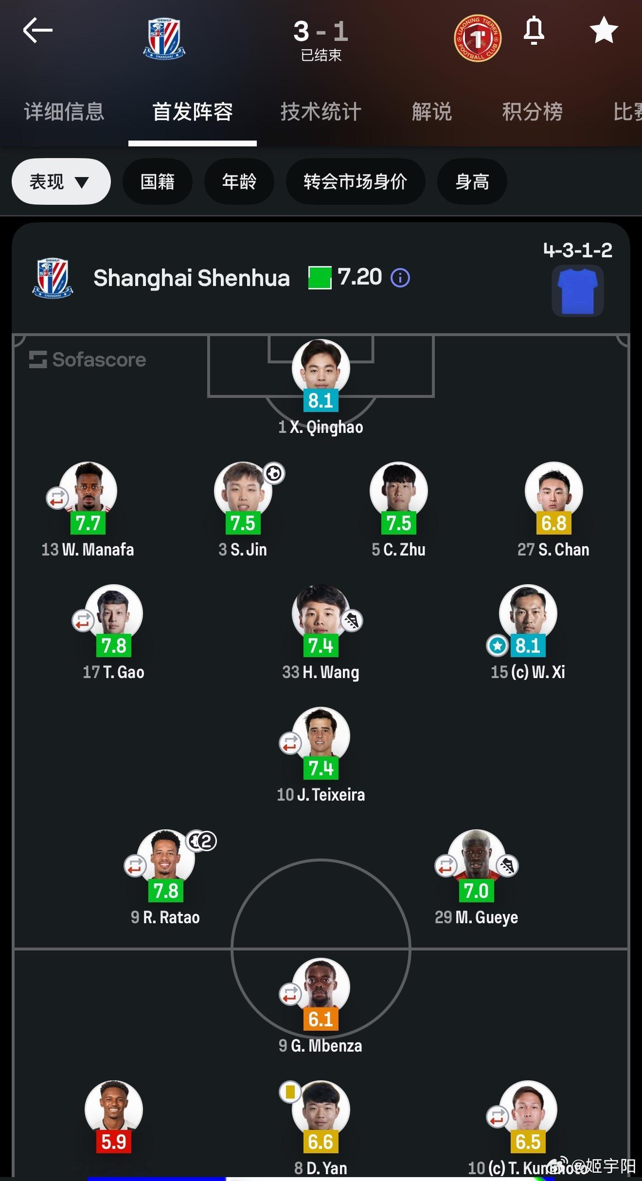 昨晚申花主场对铁人一战,预期进球 XG 申花 3.49 比铁人的 2.49。门将薛庆浩做出 7 次扑救同时获评全场最高分,也足够说明这场比赛的场面并不像上半场比分显示的那样悬殊和一边倒。关键还是申花门前机会把握的更好,而且大多数时间里门将和两名中卫发挥稳定。之前的上海德比战,申花预期进球 XG 是 1.66,海港则只有 0.18。足以说明相比德比战,一来铁人外援阵容齐整前场创造机会的能力不差,二来昨晚申花给到对方的空间和机会也着实不少。