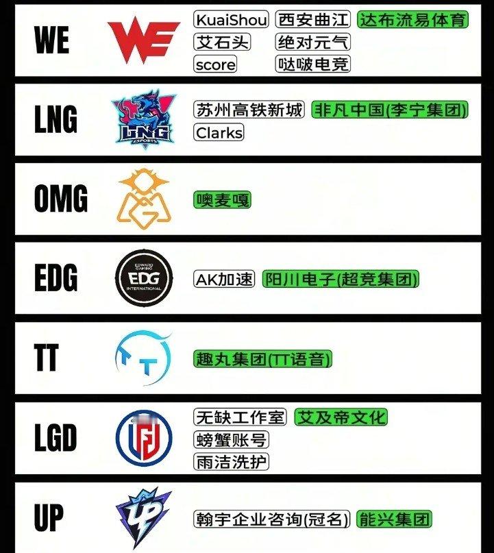 WE 这商务团队真的得当财神爷供着!在成绩并非顶级的情况下,依然能让这么多金主爸爸赞助,这公关和资源对接能力真没谁了