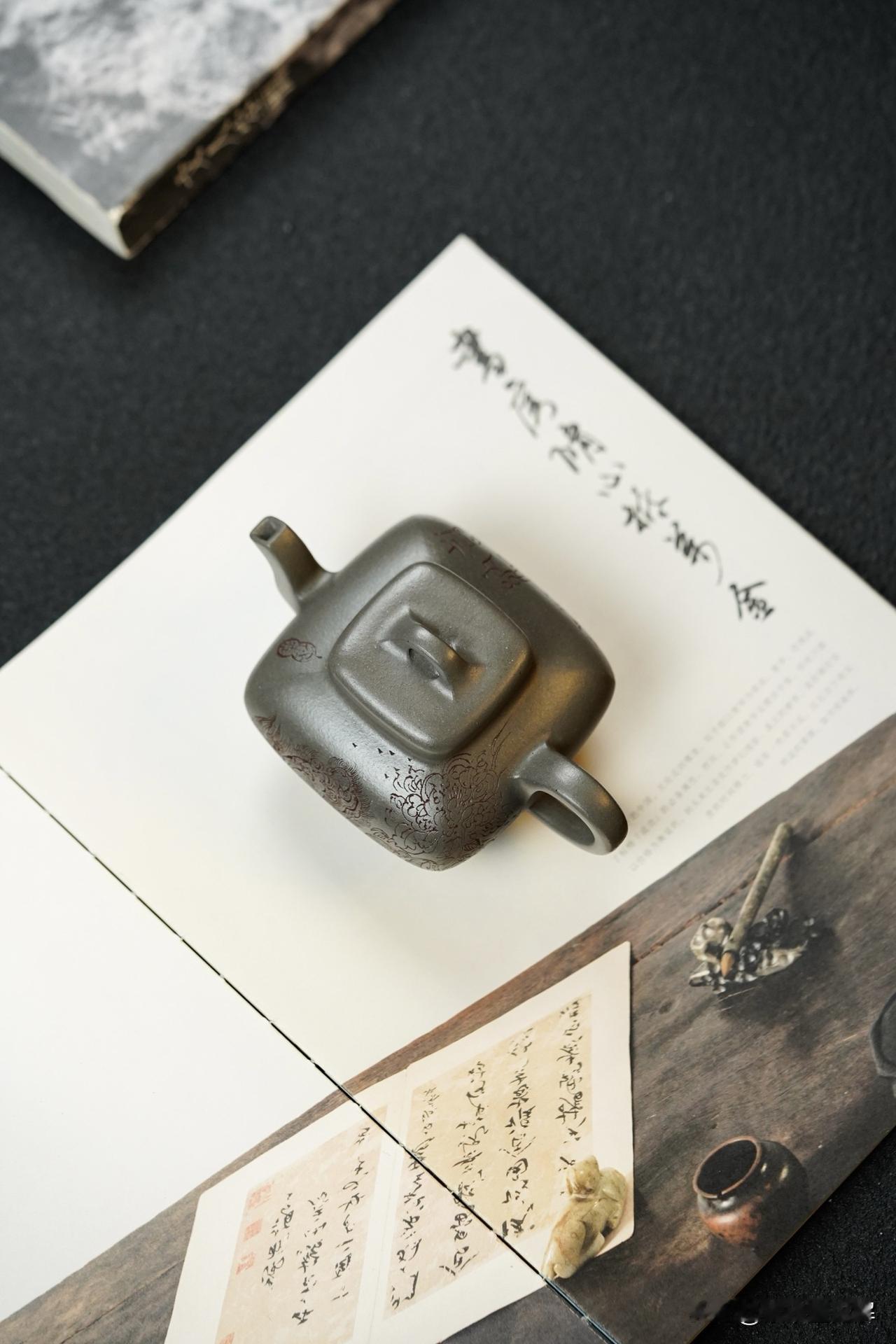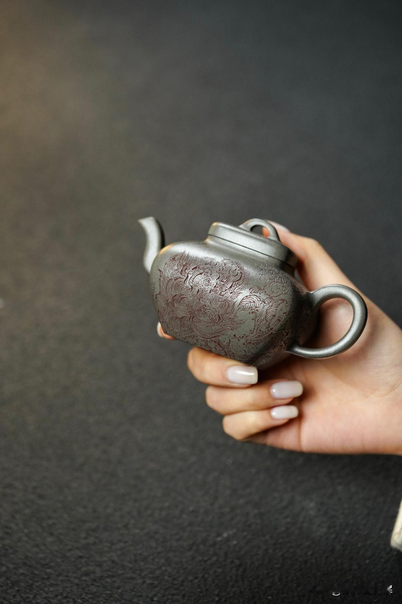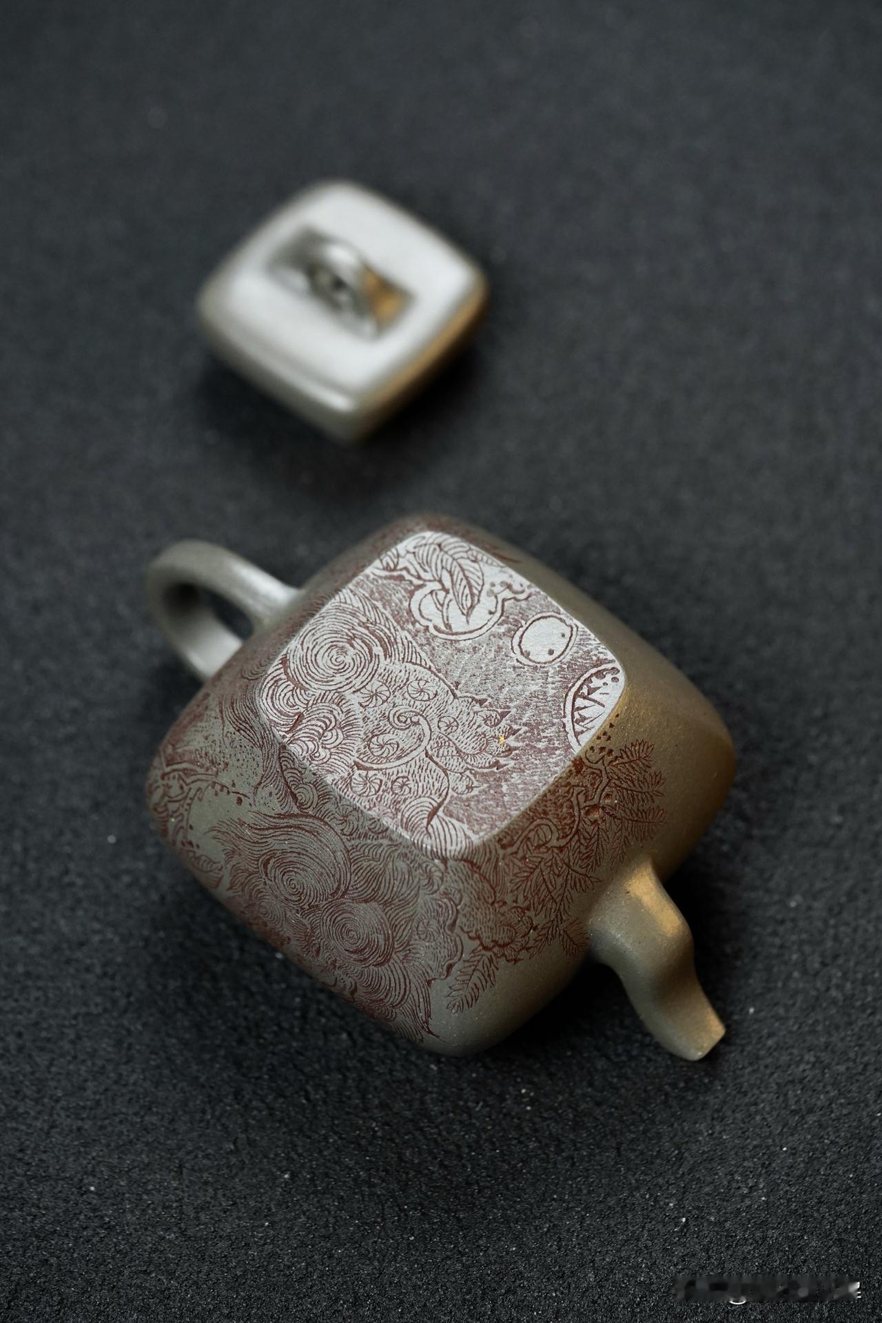 壶身手工精刻“瑞狮戏嗅牡丹” 寓意吉祥 细节精细 上手把玩效果出彩