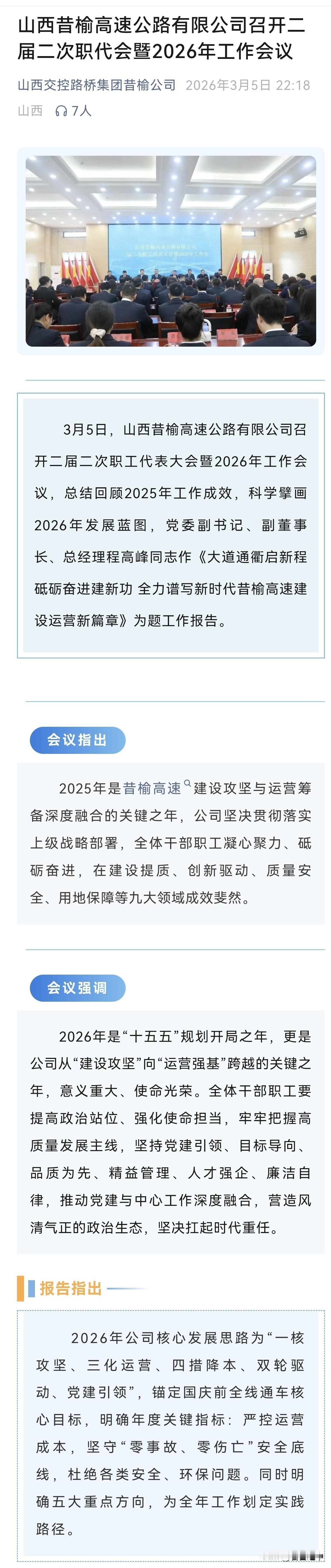 昔榆高速,是晋中地方高速,由省企占了运营几十年的特许权。