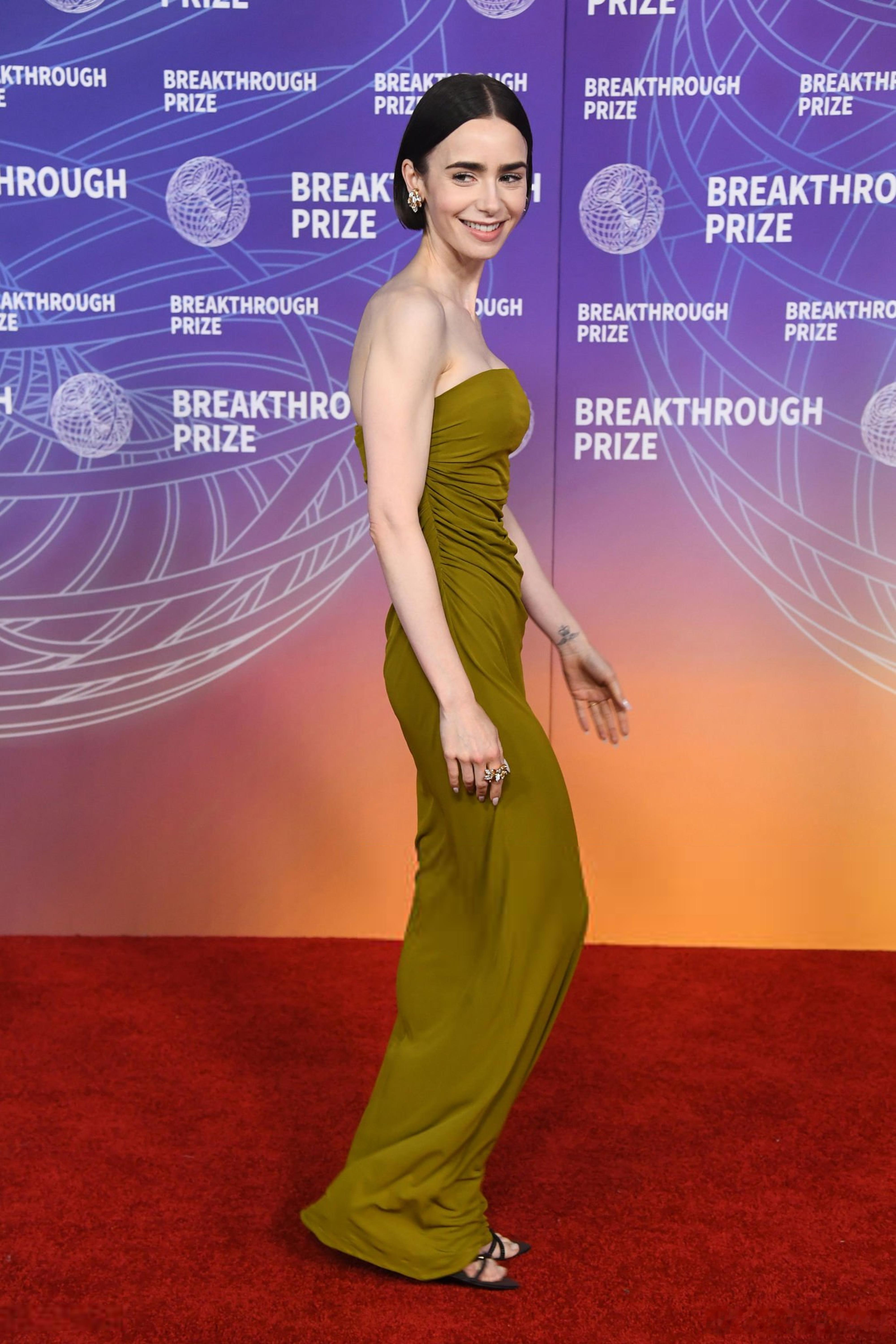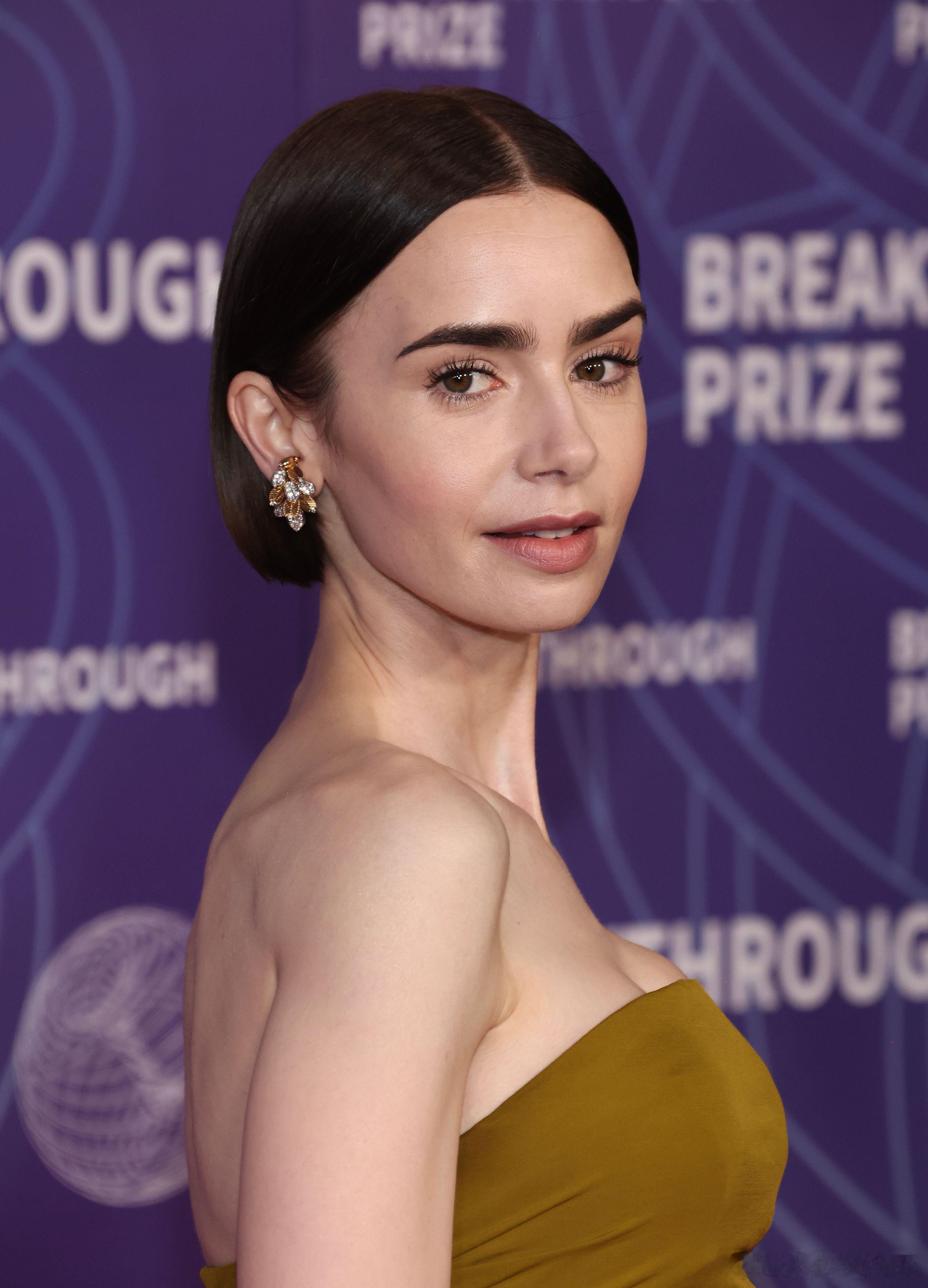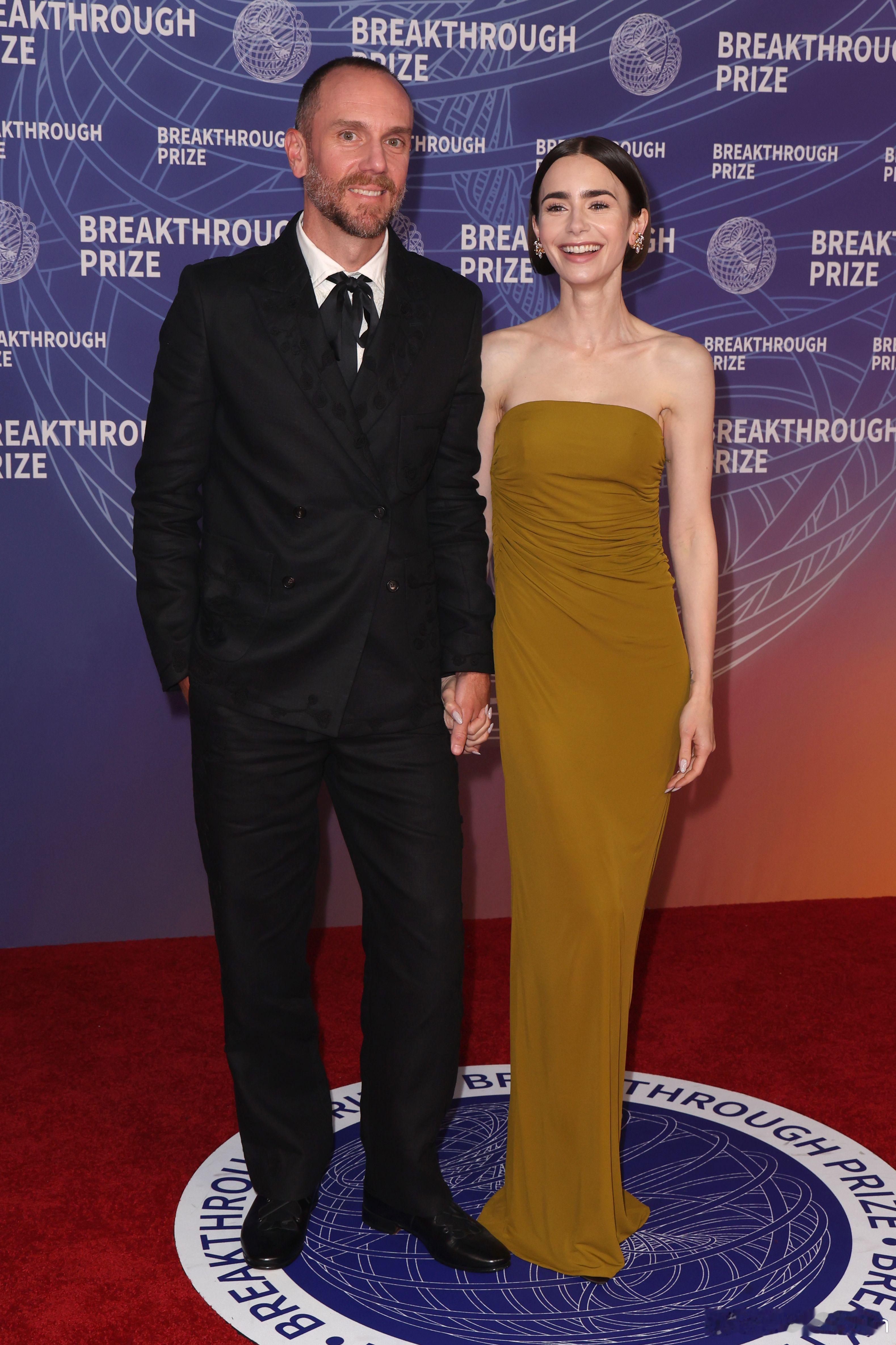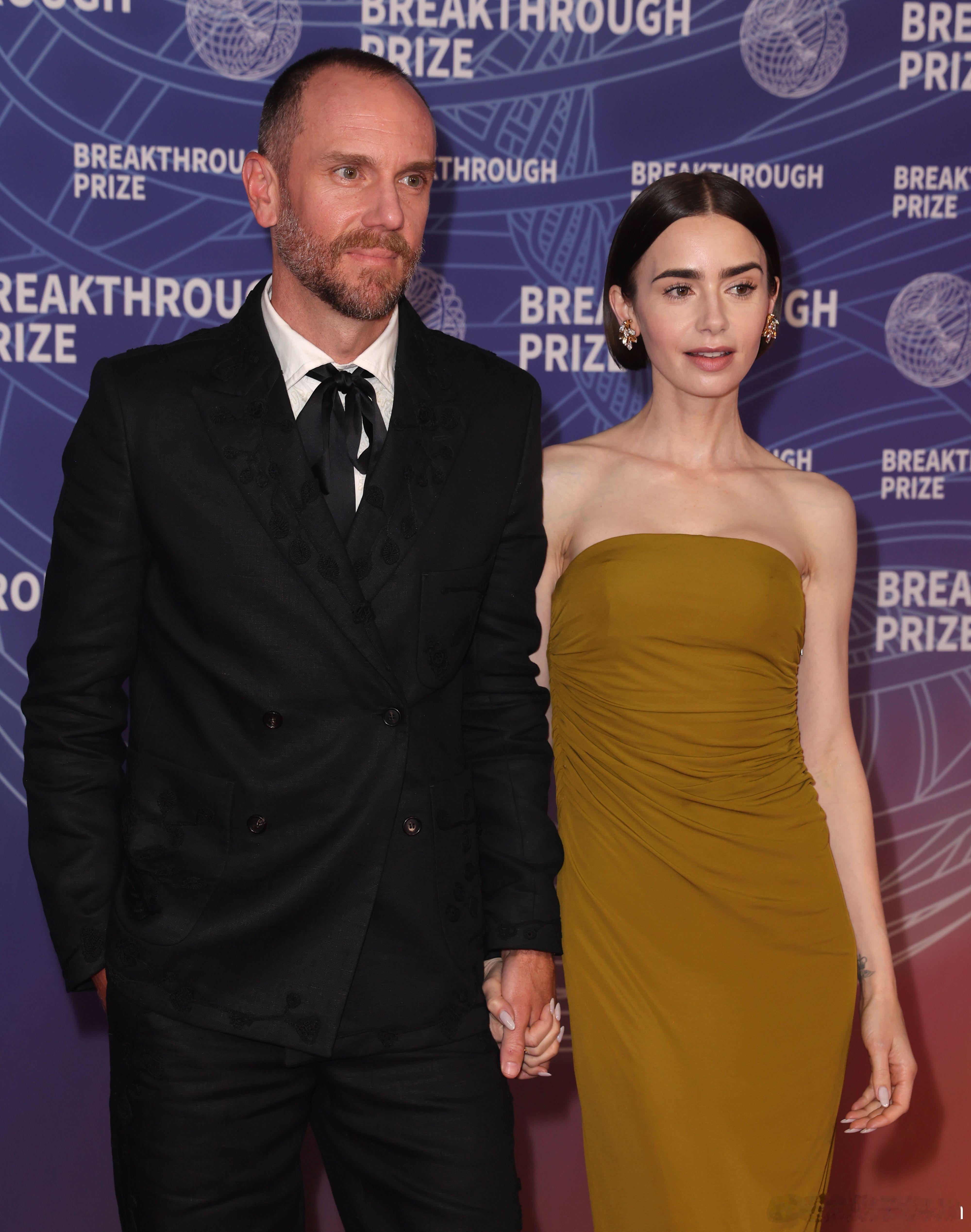 Lily collins莉莉柯林斯和老公Charlie McDowell在洛杉矶出席第十二届Breakthrough Prize颁奖礼,莉莉也是好薄的一片