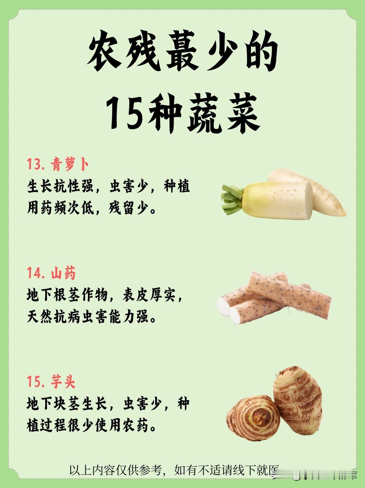 整理了农残相对更低、日常更安心的15种蔬菜,自带天然“防护力”,给家人吃更放心👇
