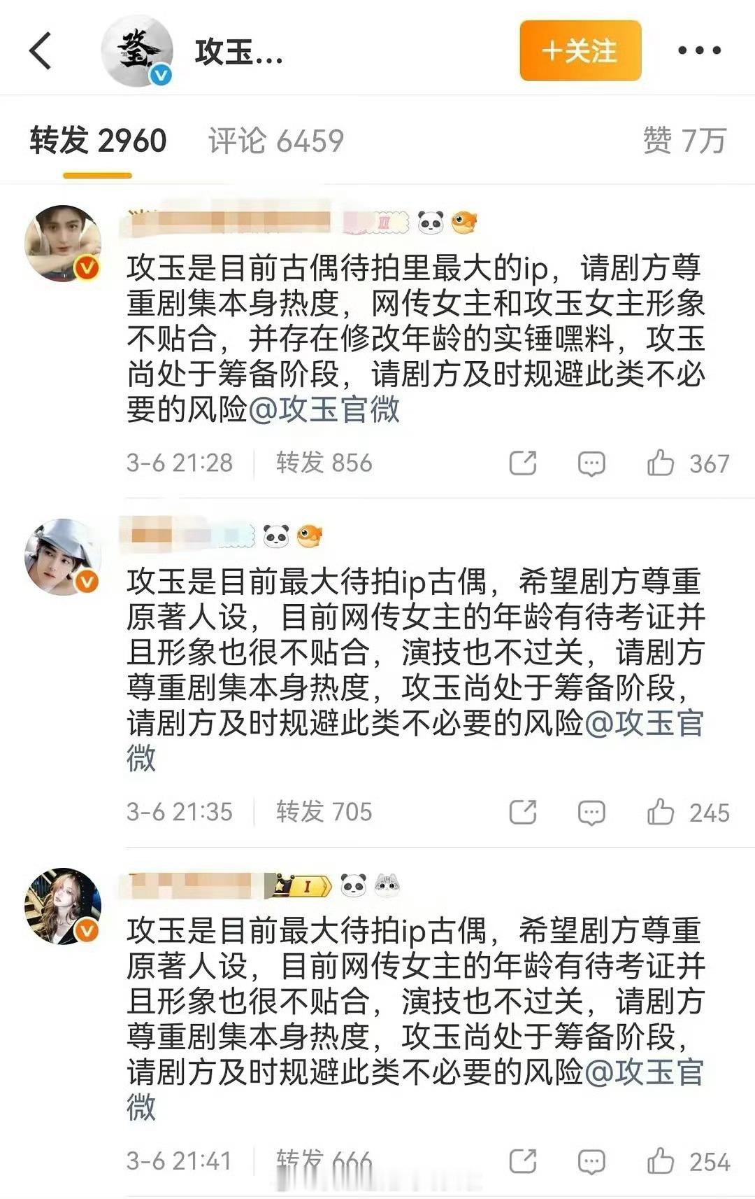 业内直接下场内涵,影视寒冬能开的项目不多,何况大ip能演上就应该偷笑,粉丝对自担