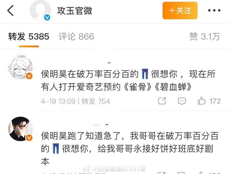 业内直接下场内涵,影视寒冬能开的项目不多,何况大ip能演上就应该偷笑,粉丝对自担人气没清楚认知业内的意思,侯明昊还算不上顶部流量,他这个级别的艺人还是需要狼性抢饼的,不然过了这村没这店,有道理吗? 攻玉回应换男主 疑似业内内涵攻玉换男主