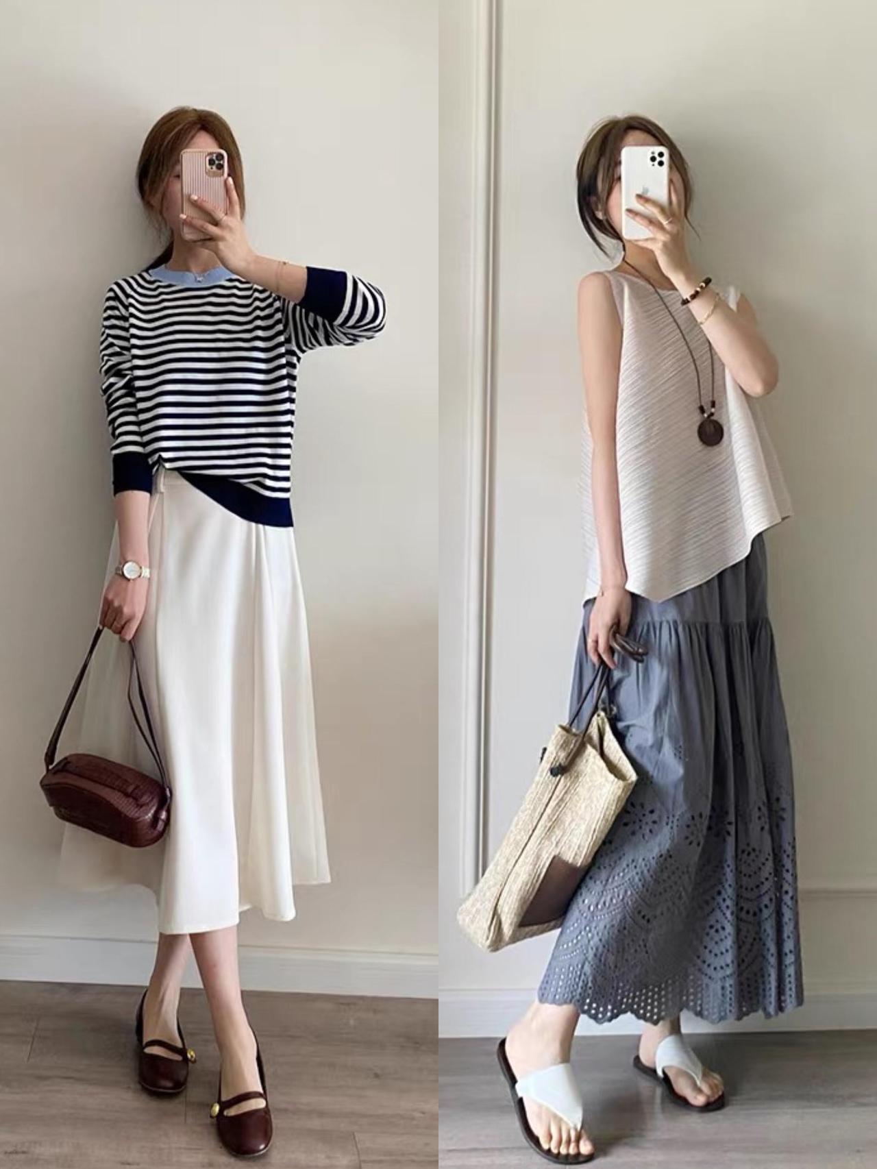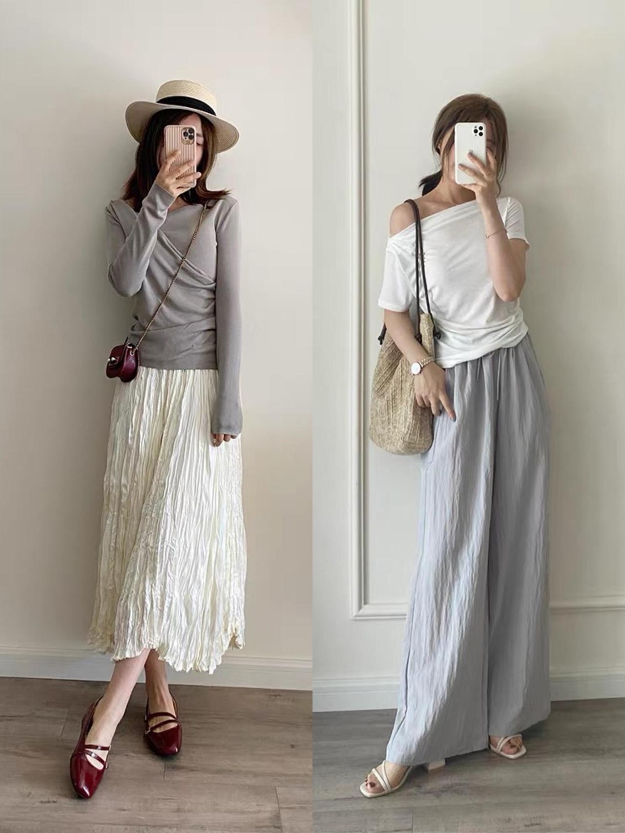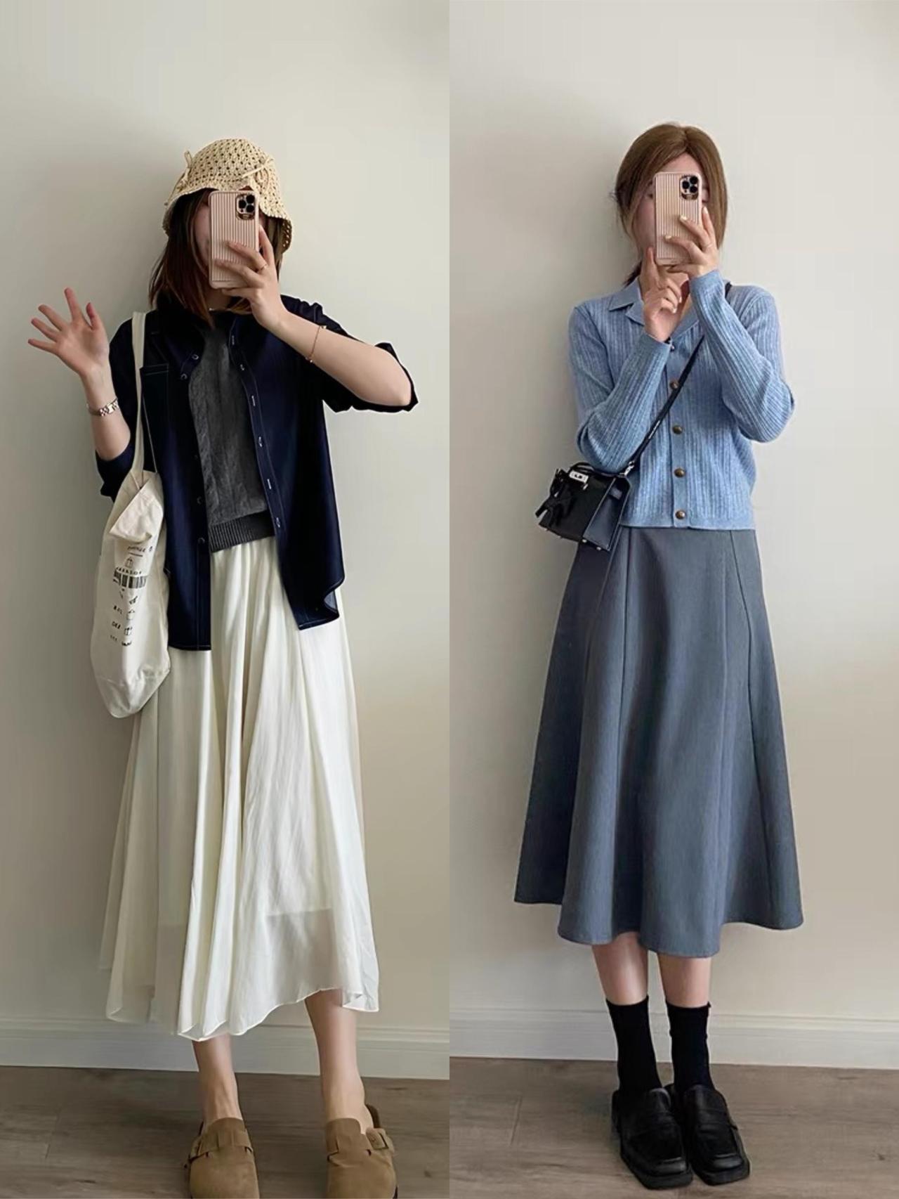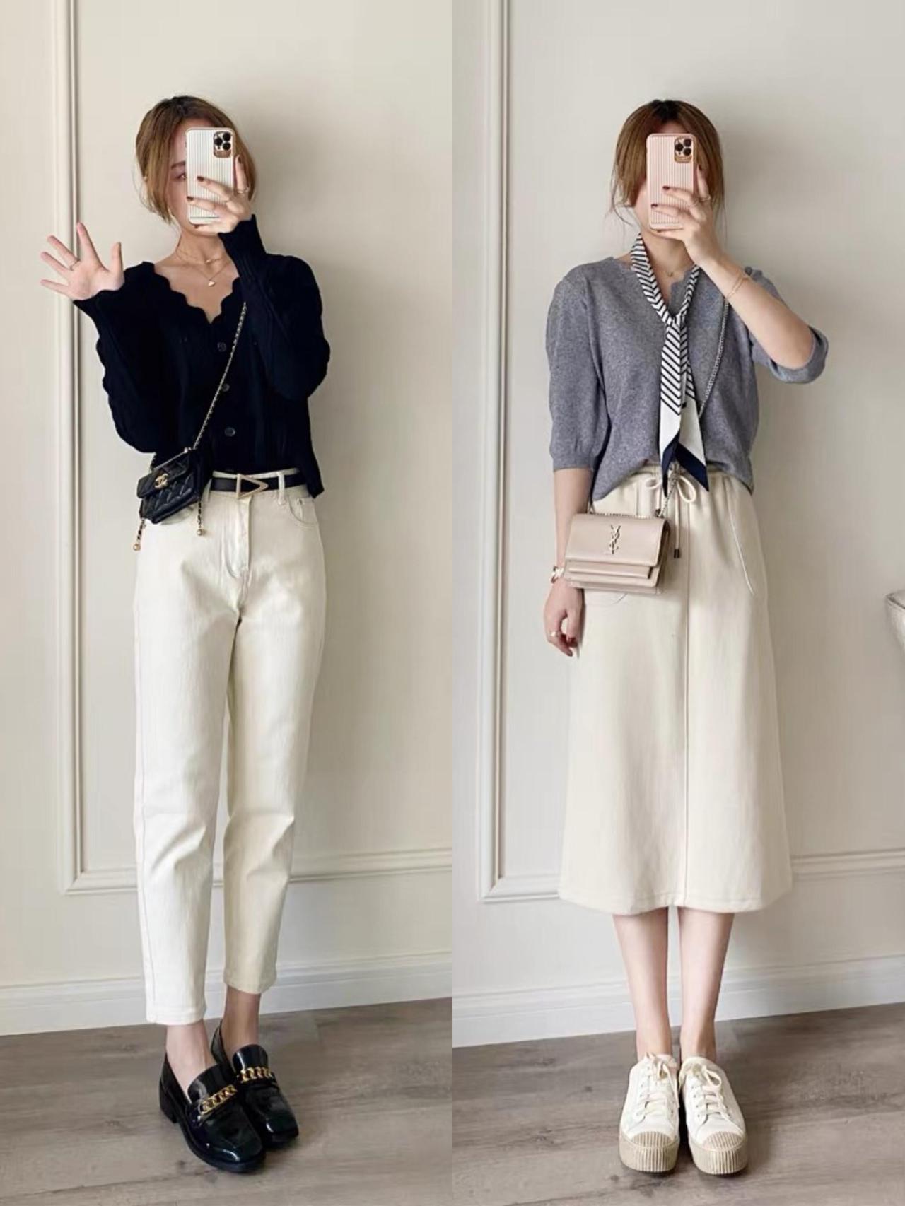 低饱和色系搭配简约利落的版型,把通勤氛围感拉满。针织开衫、衬衫、西装和半裙、阔腿裤的组合,温柔又显瘦,不张扬却很有质感。搭配精致的小包包和低跟鞋,细节里透着优雅,日常通勤或轻商务场合都能hold住,轻松穿出得体又松弛的轻熟风。