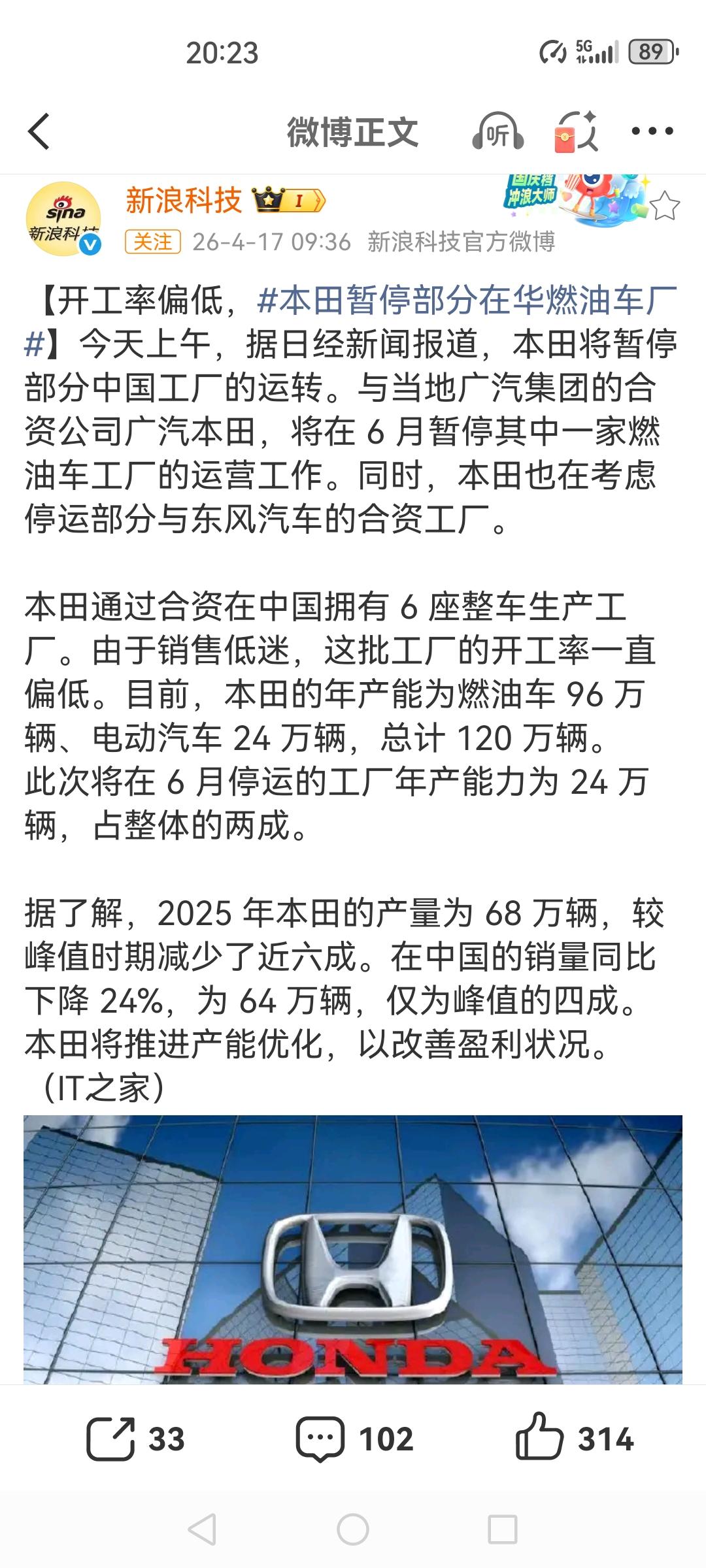 暂停非关停,文章被投诉下架了,上午发了一篇本田合资工厂的头条,这网上的信息铺天盖地,难道是假的。燃油车不好卖也不是一家两家,转型新能源是大势所趋,靠投诉下架并不能改变市场的变化,只有抓紧拥抱新能源,紧跟车主的喜好,紧随汽车市场的变化,做出让老百姓喜欢的车,才是发展的根本。
