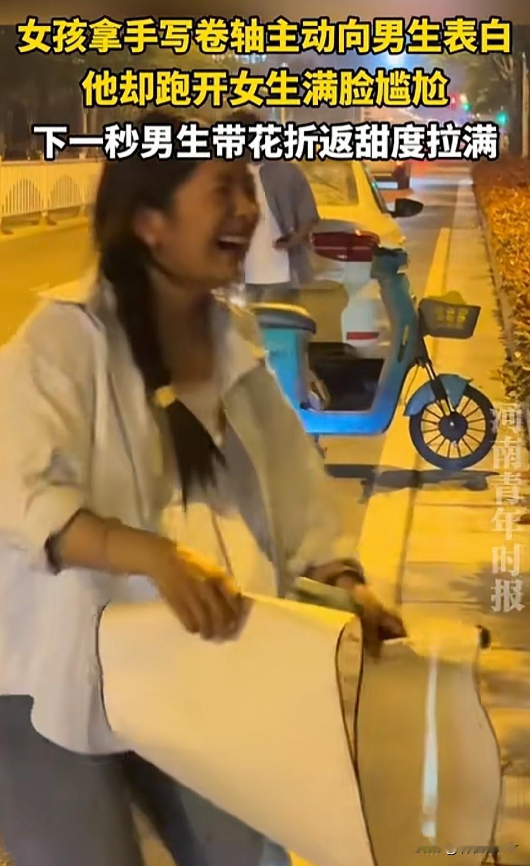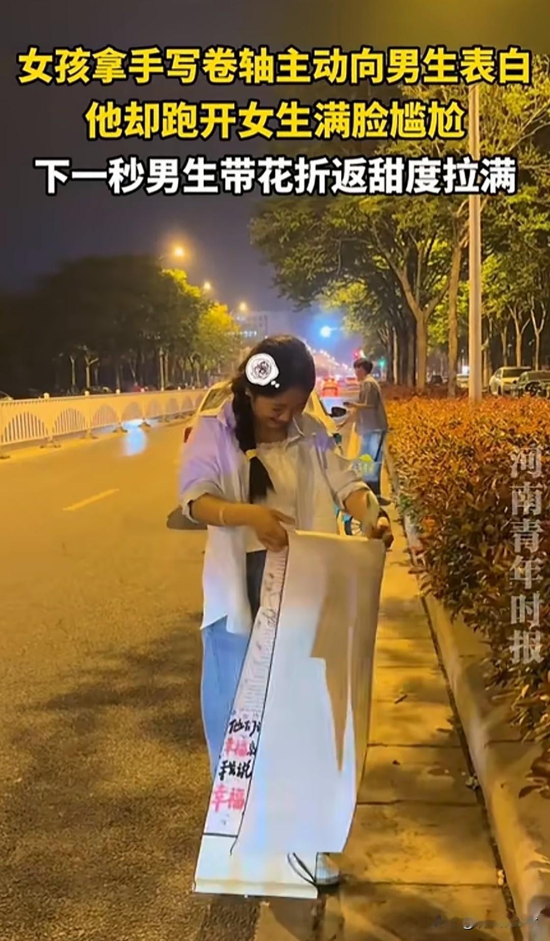 女孩举画轴大胆表白,男生扭头就跑?下一秒反转甜到齁!