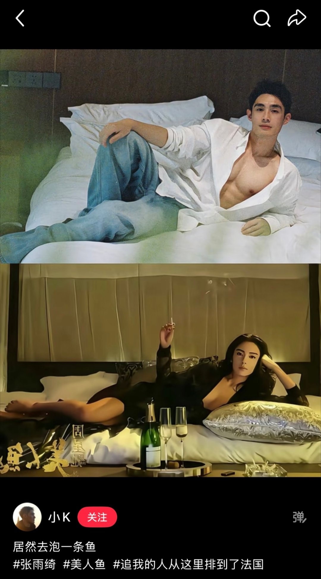 张雨绮在美人鱼那个经典pose又火了咋地,大家都有从这里排到法国的追求者??