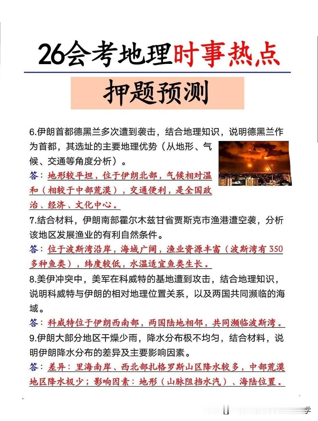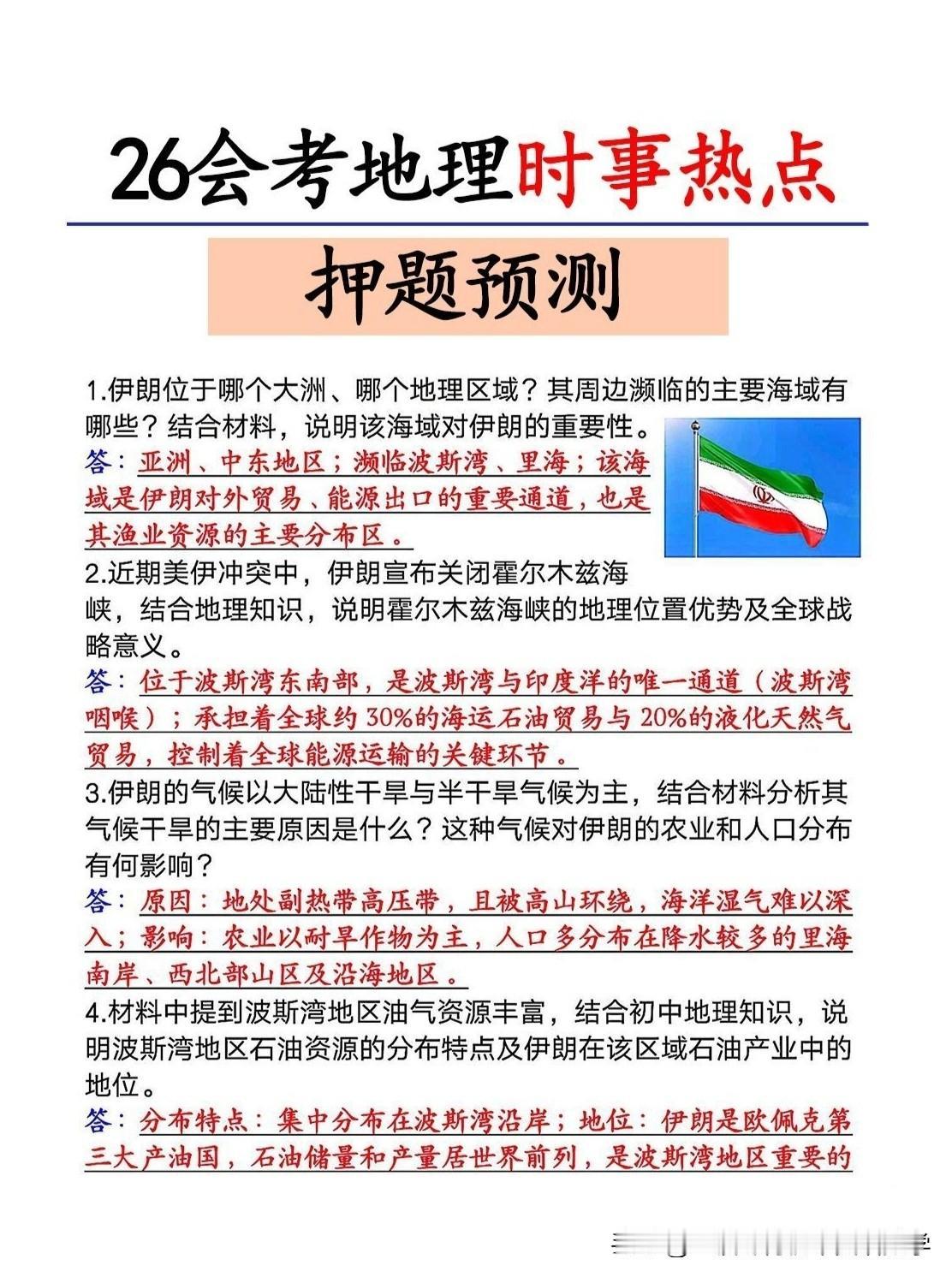2026地理会考时事热点押题预测! 好好学习,天天向上!