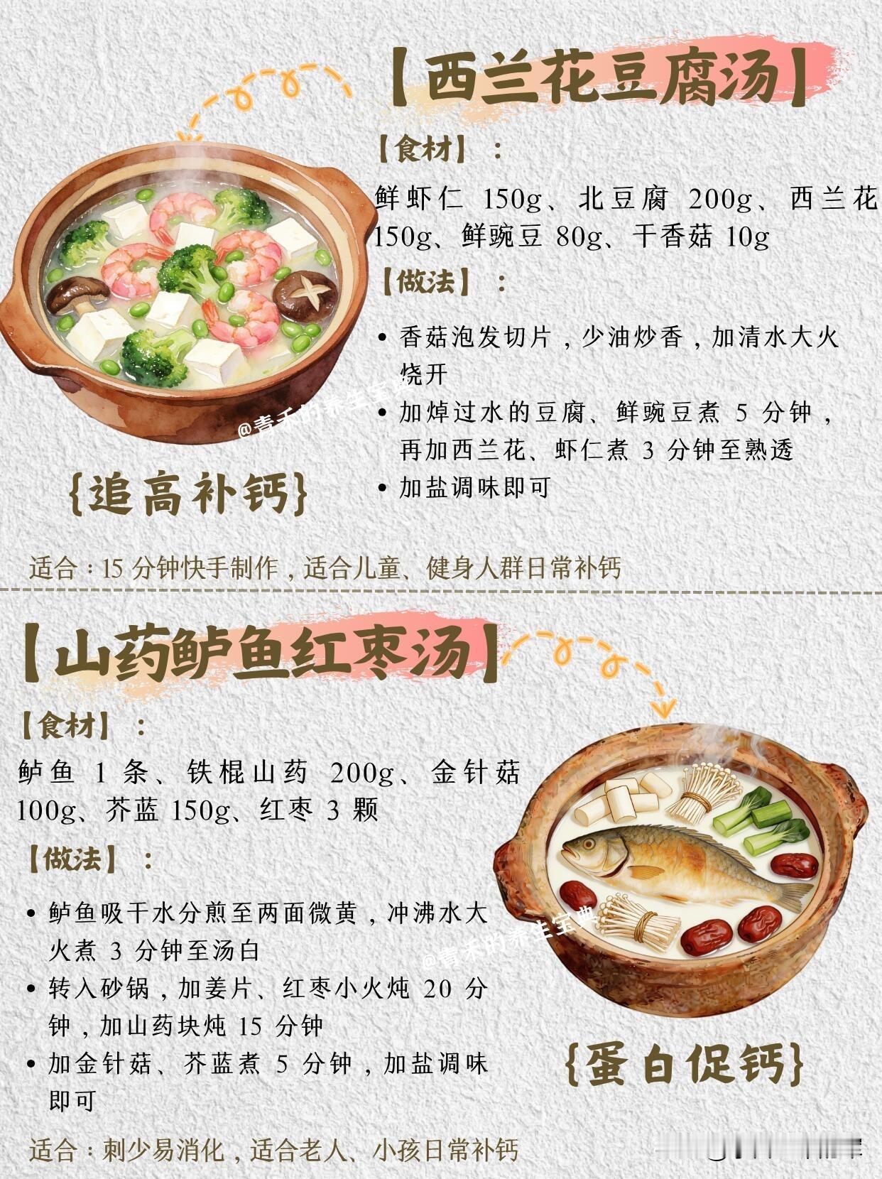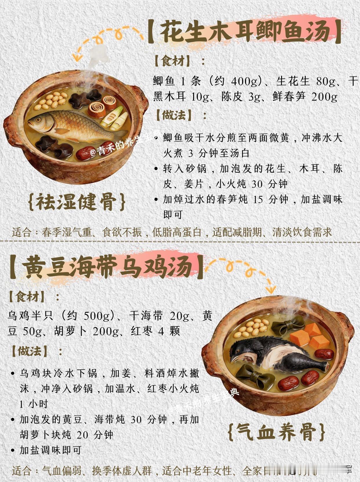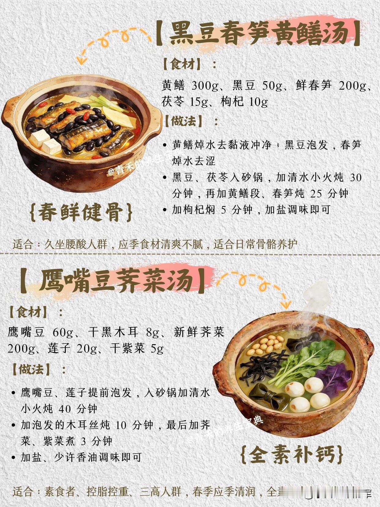 💡 小提示:这些汤品都以清淡为主,春季养骨补钙的同时,还能兼顾祛湿、补气血,可根据家人的体质和口味选择,每周换着喝就可以啦。