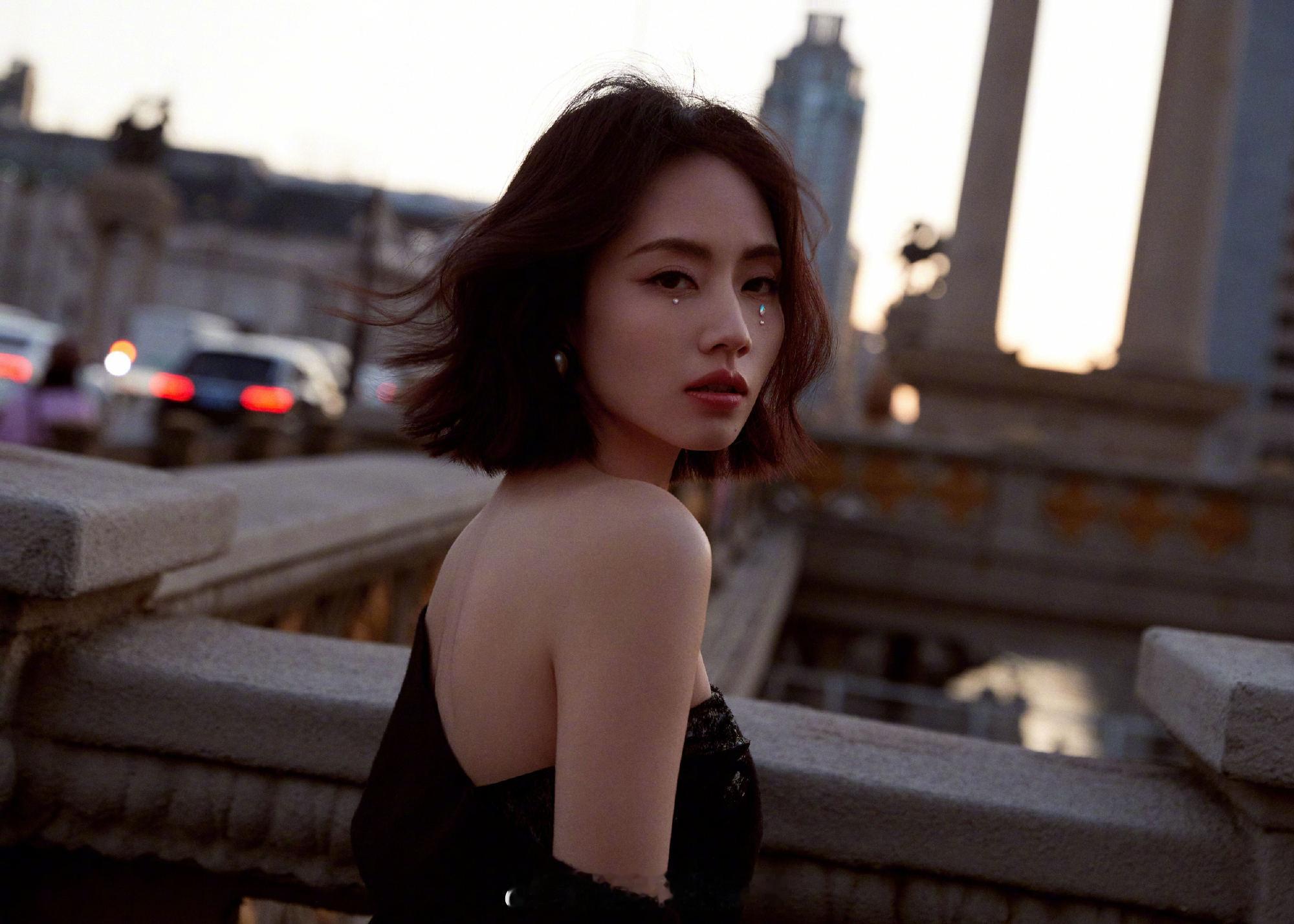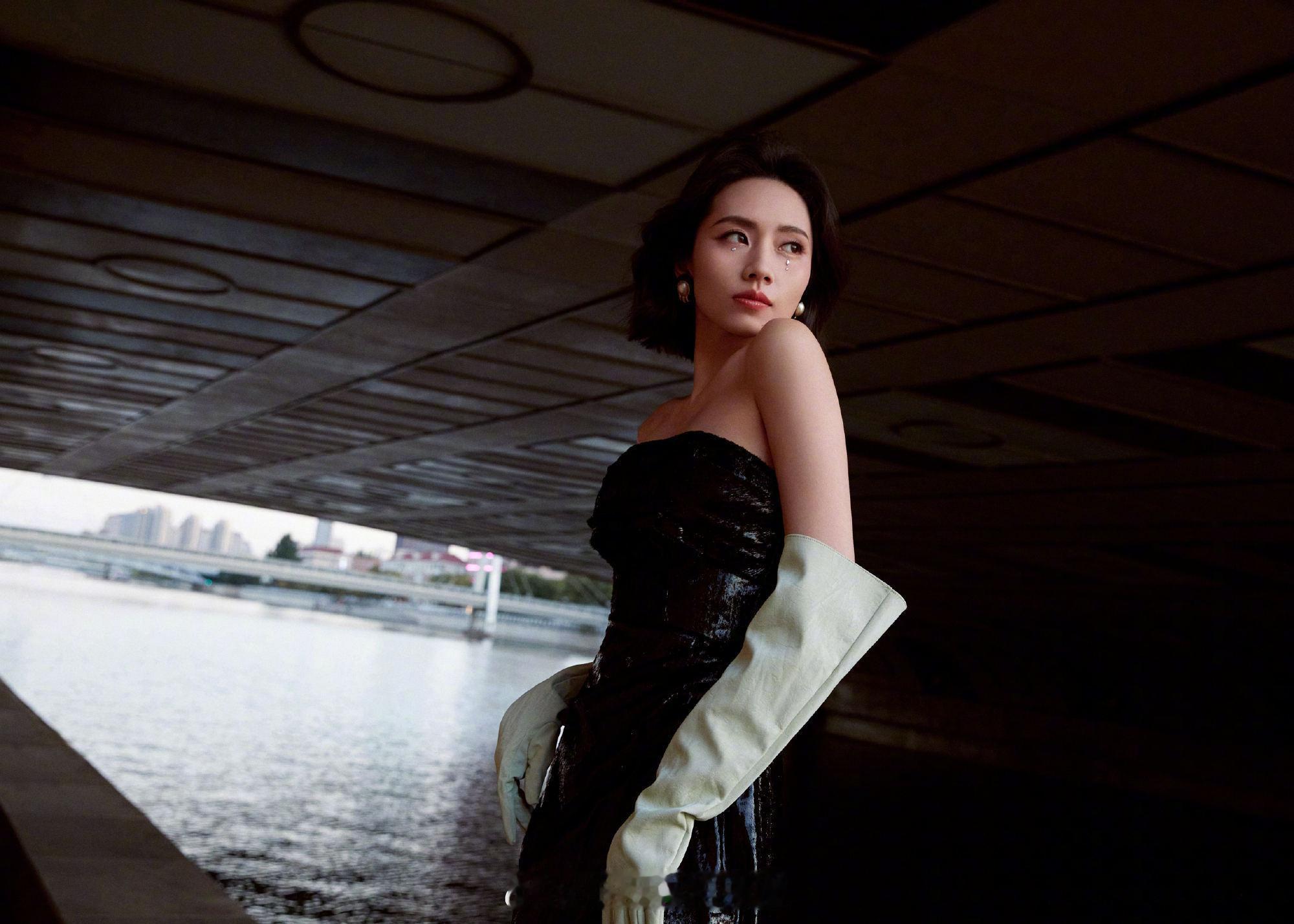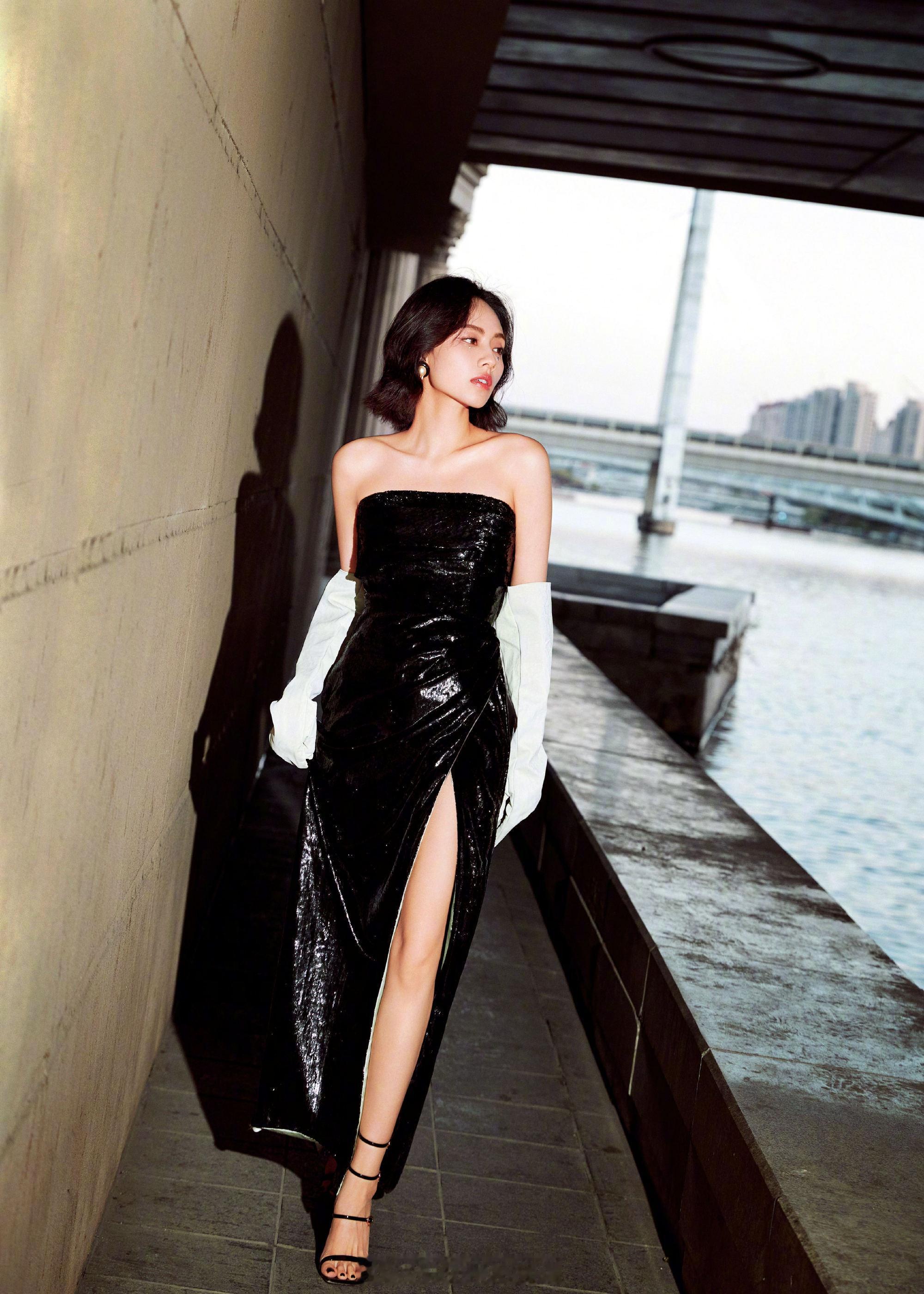 刘惜君黑色抹胸写真