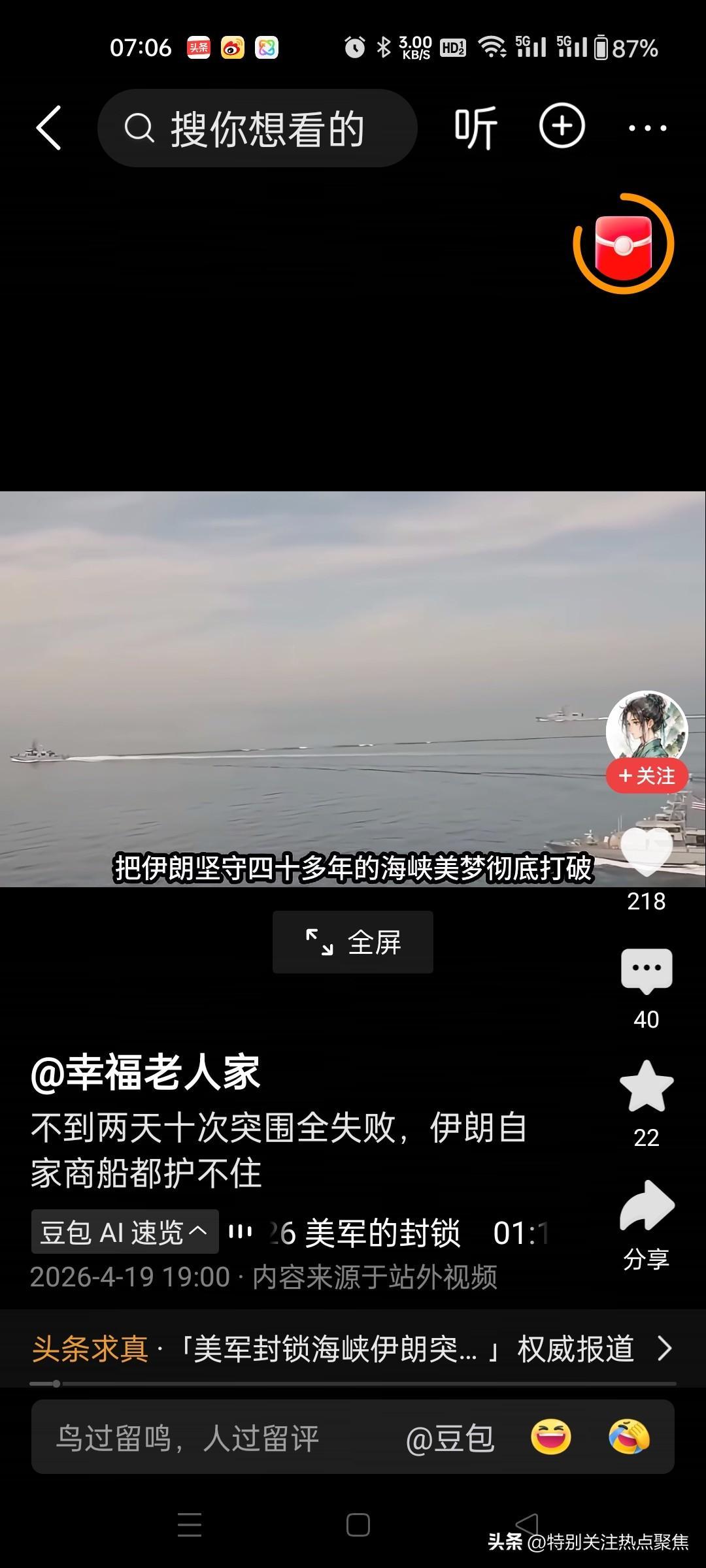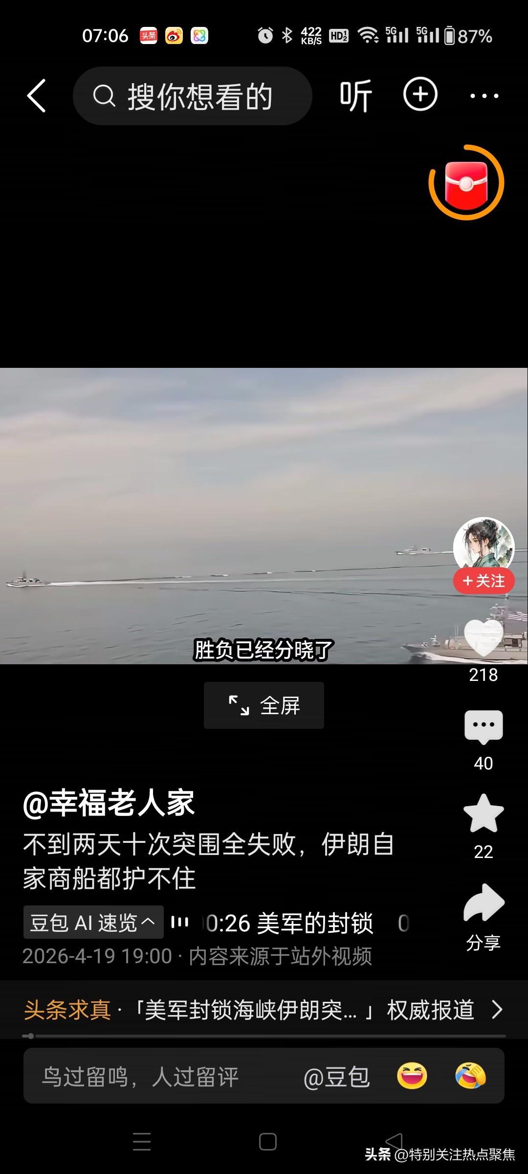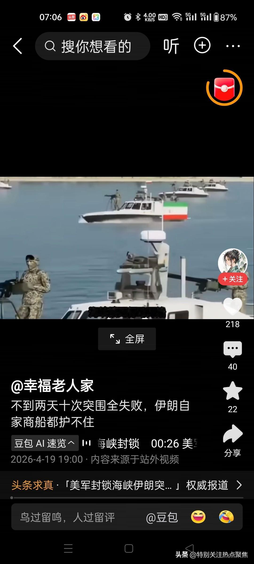 截至4月16日,伊朗10艘载有石油、贸易物资的船只(含油轮、货轮)尝试驶出海峡,均被美军拦截、武力劝返,无一成功突围。