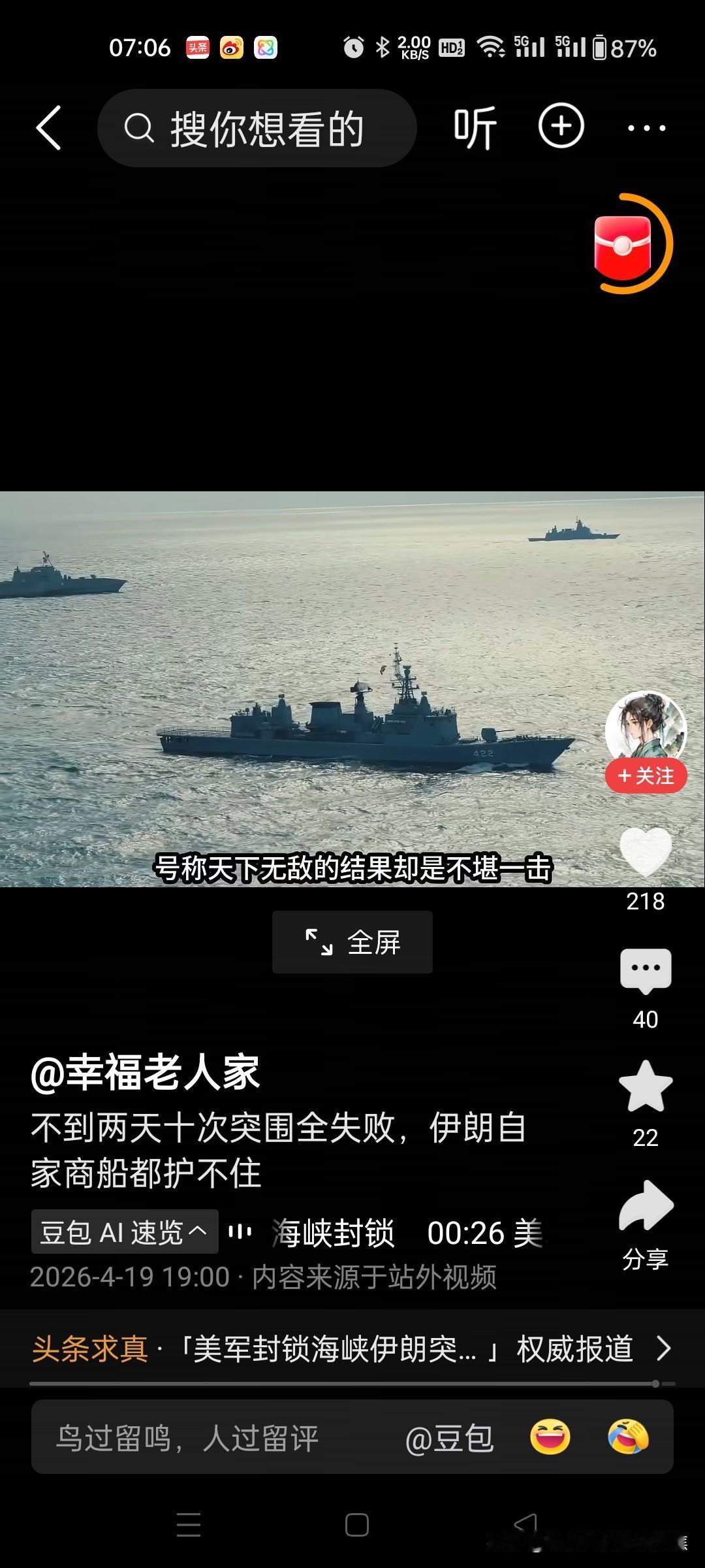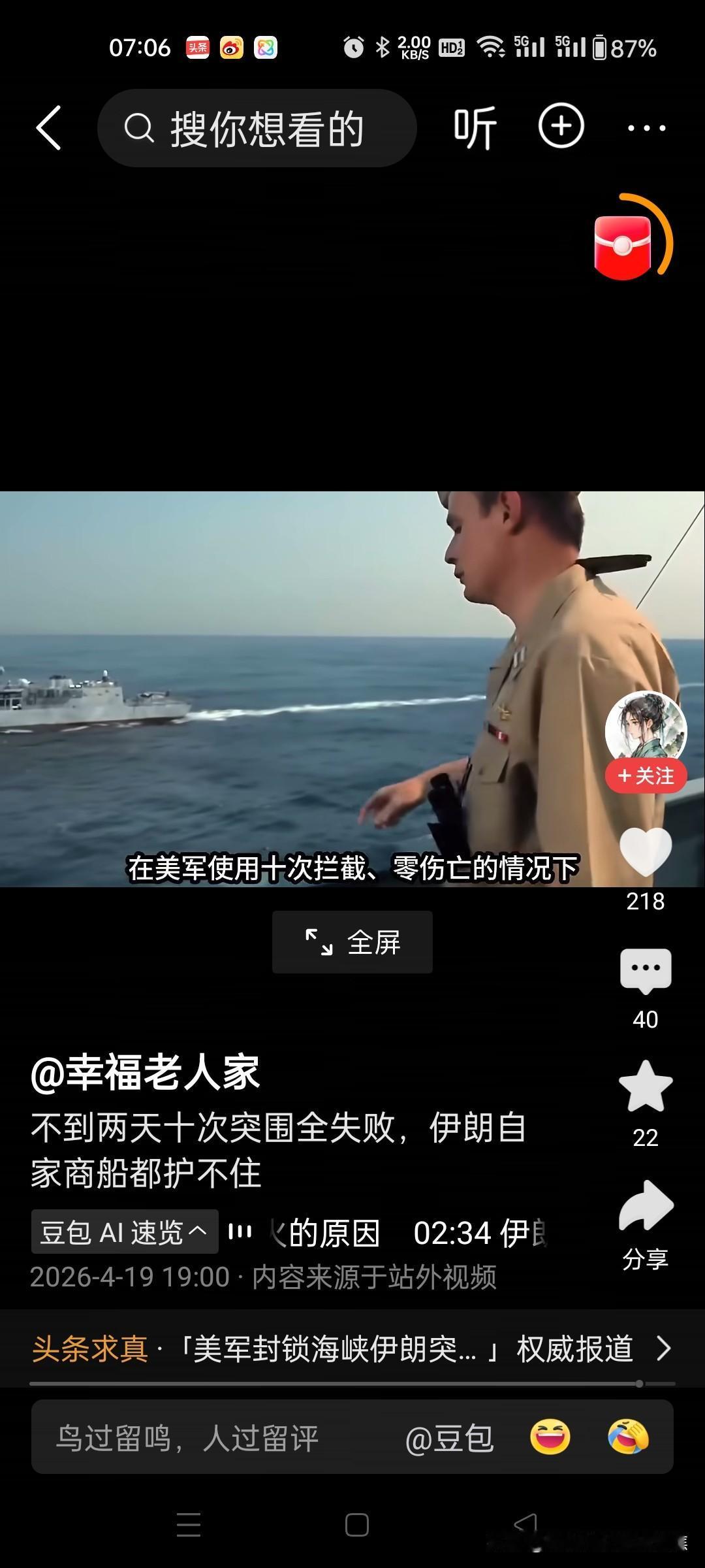 - 美军:全面掌控海峡控制权,对伊朗形成强力海权压制。