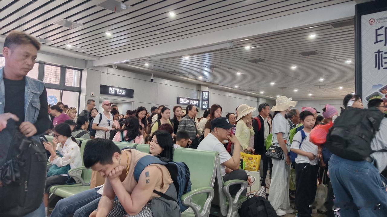 客流还是很拥挤的,尤其是排队上车的时候,根本排不下,候车室的空间显得狭窄。