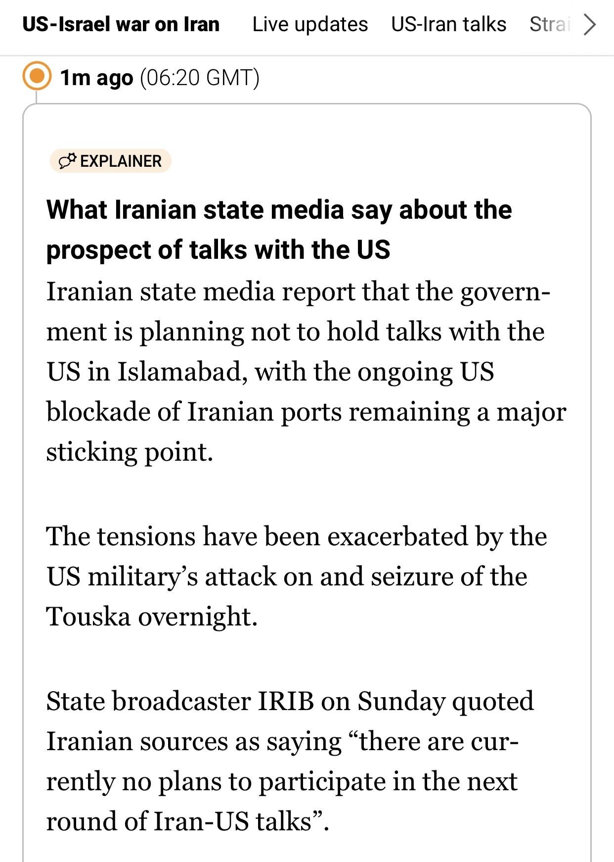 与此同时,伊朗国营IRNA指出,因封锁和华盛顿的“不合理和不切实际的要求”,”在这种情况下,没有明显的谈判成果的前景”。