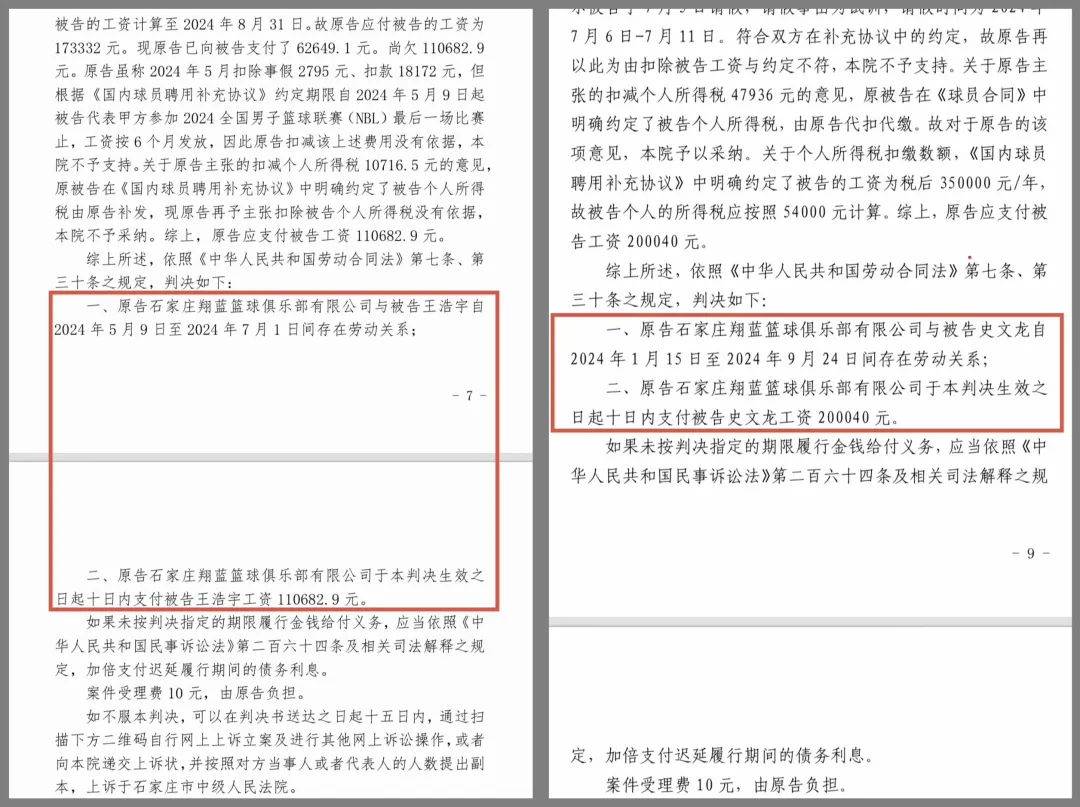 史文龙是联名讨薪的5名球员之一,他出身于八一男篮青训,2018年通过选秀进入CBA,在青岛男篮短暂效力2个赛季。之后,他一直在NBL诸队间辗转。2024年1月,他与石家庄翔蓝签订《球员合同(即标准合同)》,双方约定,他的工资为税前40.4万,分10个月(2024年3月-12月)发放,但在收到了3月、4月的工资之后,工资就停发了。