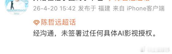 据陈哲远对接沟通确认后发文,陈哲远未签署过任何具体AI影视授权。 陈哲远丞磊曾舜