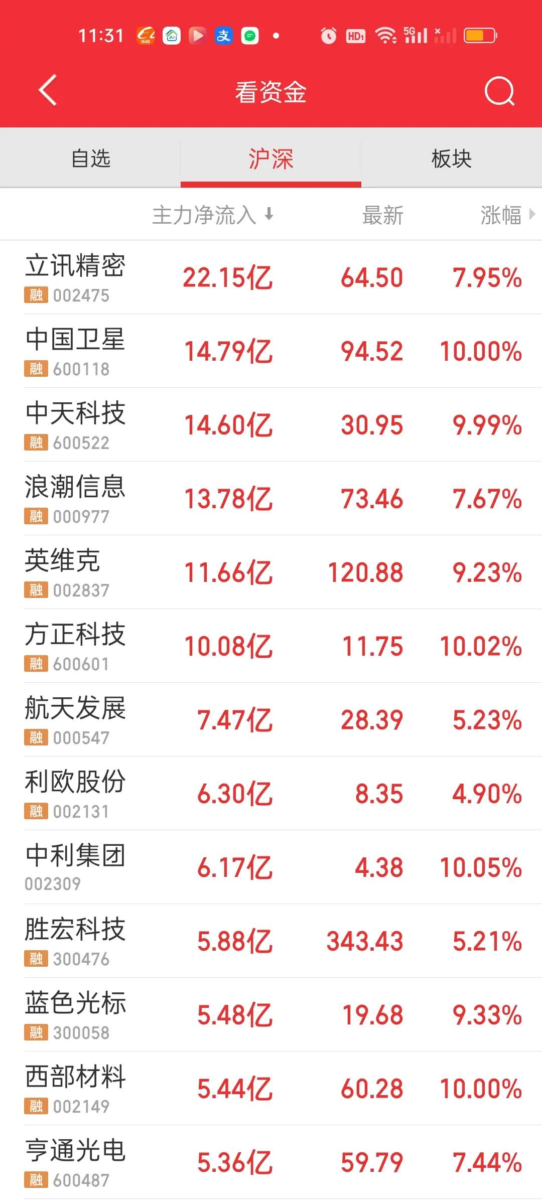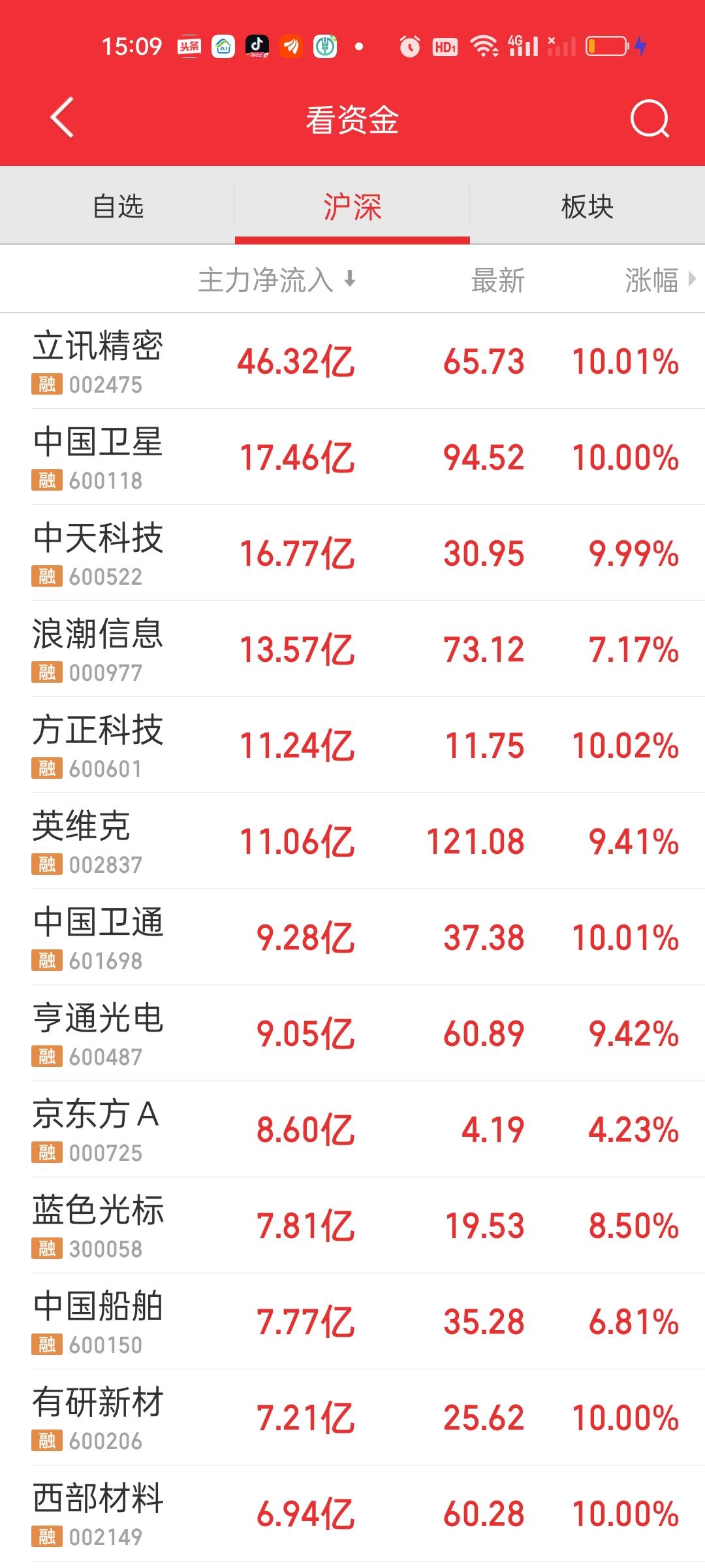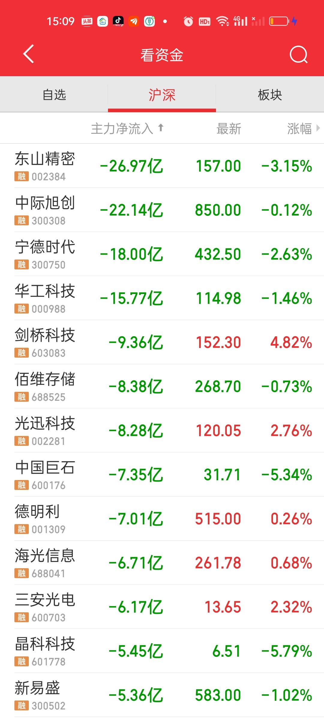 全天收盘了,下午指数再次出现急速下杀但很快又被拉起来了,量能在急速下杀的时候还是放出来了一些。另外下午大盘资金也流出了100亿。个股上涨家数比上午收盘时多了120亿。涨跌停比也从75:12变成了90:17,立讯精密主力资金净流入46.32亿,东山精密和中际旭创净流出资金都在22亿以上,宁德时代也净流出了18亿。
