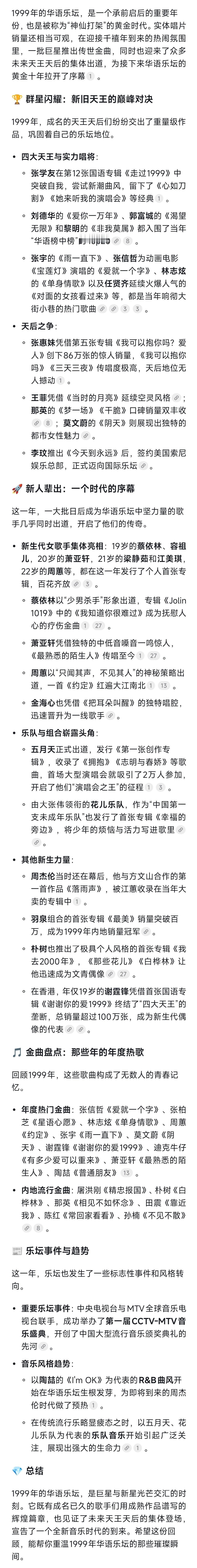 我们是幸运的,二十世纪九十年代至二十一世纪前十年,我们赶上了华语乐坛的顶峰阶段,有时候在想,这个时候的华语流行乐,会不会像唐诗宋词一样,过去就是过去了,很难再有那个土壤,也没有那么多点可以开发创新了呢,2025年,连DeepSeek都感觉无话可说