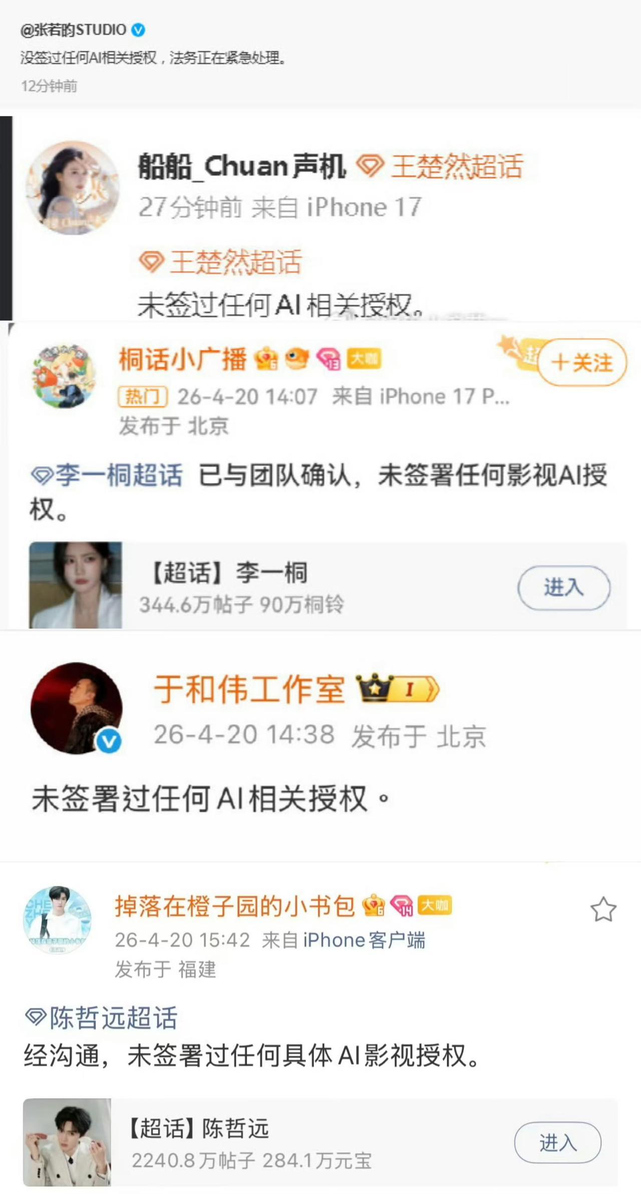 目前已经有很多艺人回应,没有签署任何影视授权。