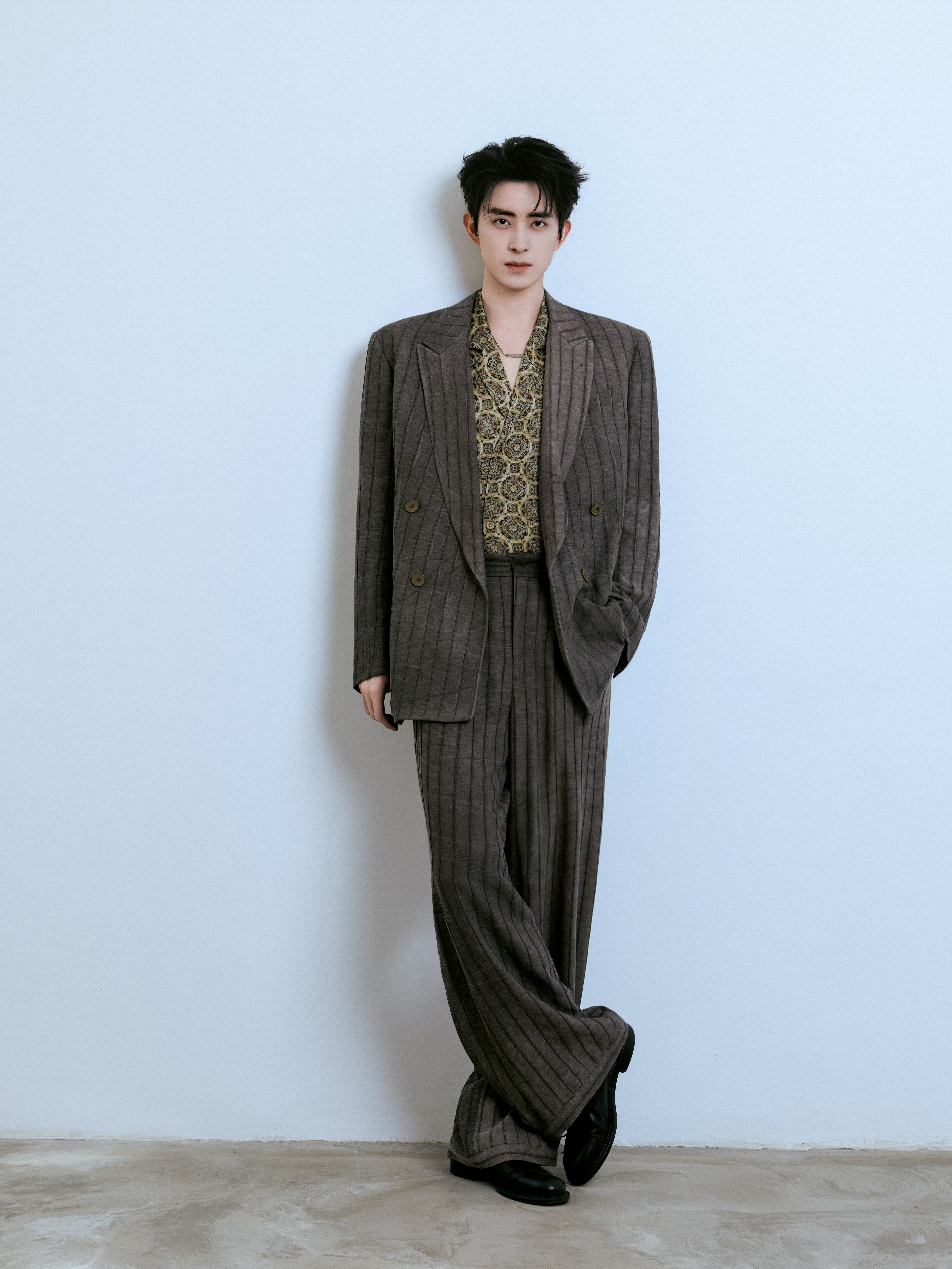2026 爱奇艺世界大会拉开精彩序幕 ,演员敖瑞鹏带着新作《不二之臣》出席活动展开宣传 ,预告造型物料中选择了一身 Emporio Armani 2026 春夏男装系列的开场 Look ,帅哦 !灰调竖条纹西装自带复古滤镜 ,廓形剪裁弱化了西装的正式感 ,搭配一件满印佩斯利花纹衬衫 ,尽显矜贵 、优雅的松弛魅力 ~ ✨