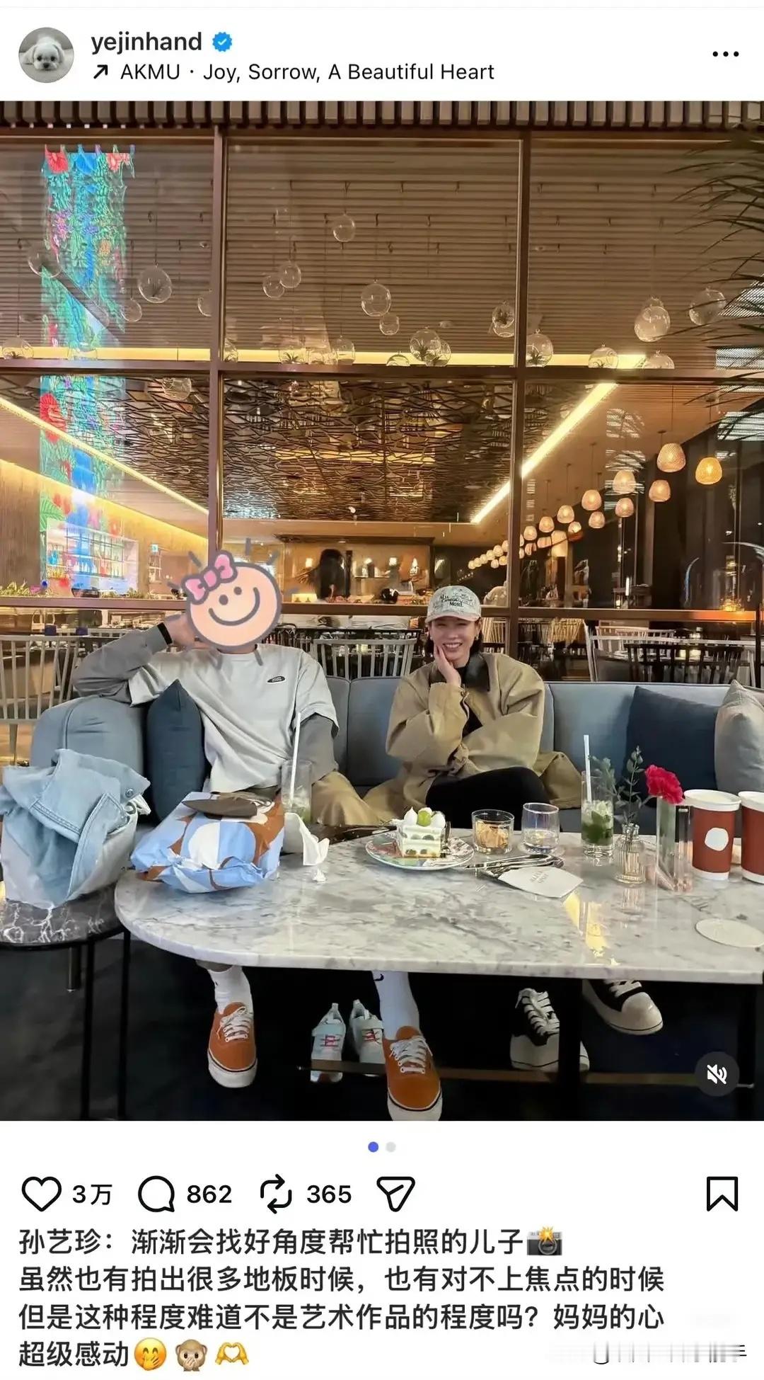 孙艺珍分享了儿子拍摄的夫妻外出约会照,发文:儿子拍照越来越有模有样了📸虽然偶尔