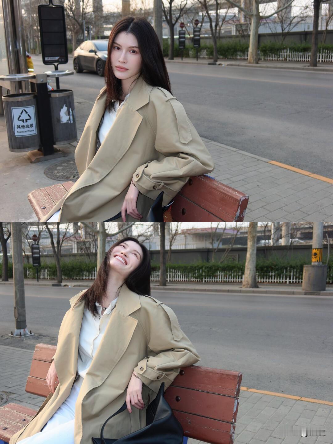 何穗晒春日穿搭, 一件风衣解锁N种风格,超模的时尚感太绝了。 4月20日,超模