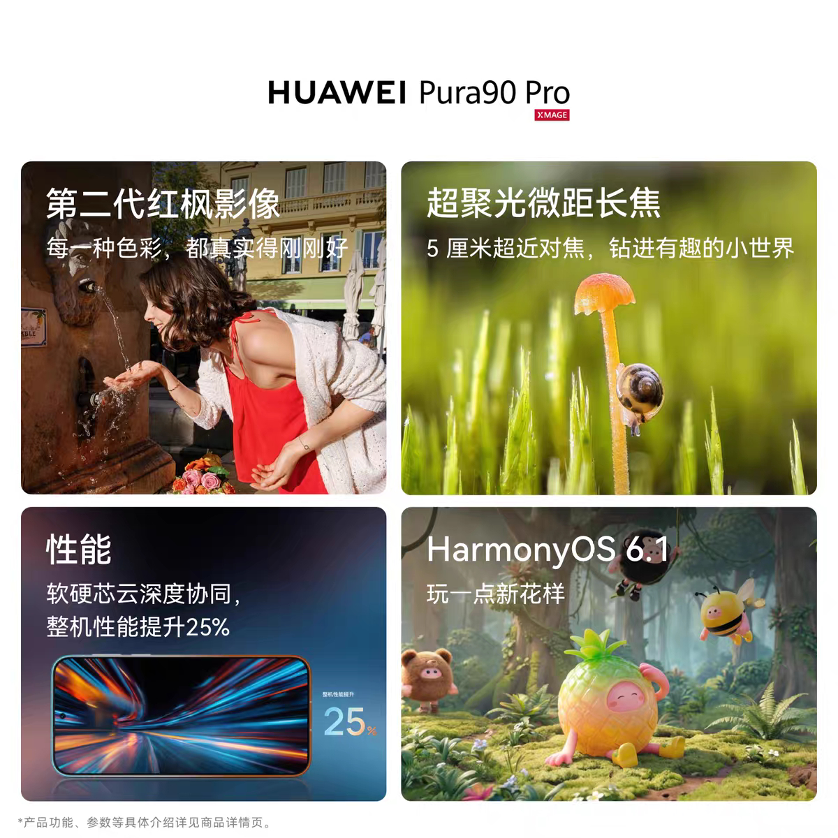 3.影像:后置5000w主摄+1250w超广角+5000w潜望长焦微距+二代红枫原色,前置1300w!