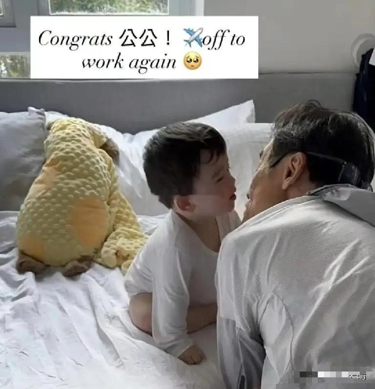 4月20日,梁家辉的女儿晒出了梁家辉在家逗弄外孙的视频,视频里梁家辉趴在外孙的床