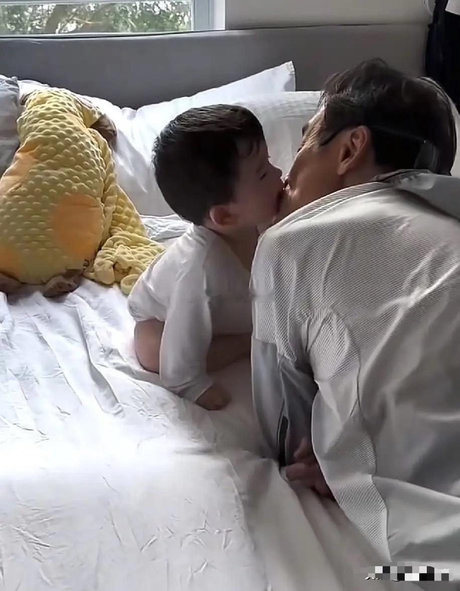 4月20日,梁家辉的女儿晒出了梁家辉在家逗弄外孙的视频,视频里梁家辉趴在外孙的床上想要亲外孙,外孙睁着一双葡萄般的大眼睛,盯着梁家辉笑得很开心,妈妈让他亲亲外公,他就立刻凑到梁家辉的面前,撅起小嘴亲梁家辉的嘴,这一幕实在是太温馨了。
