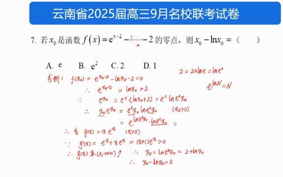 赏析2025年云南省高三9月名校联考第七题,考查了函数零点,恒等变形能力,函数同