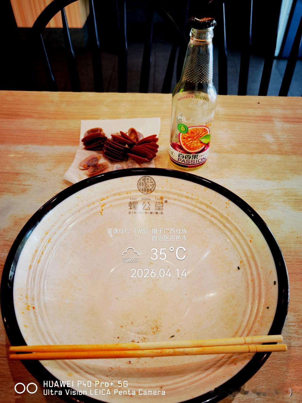 旅居生活记录(9510)广西壮族自治区百色市(195)品尝小吃51:花甲螺蛳粉(11元1碗)、百香果复合果汁饮料(4元1瓶)。
