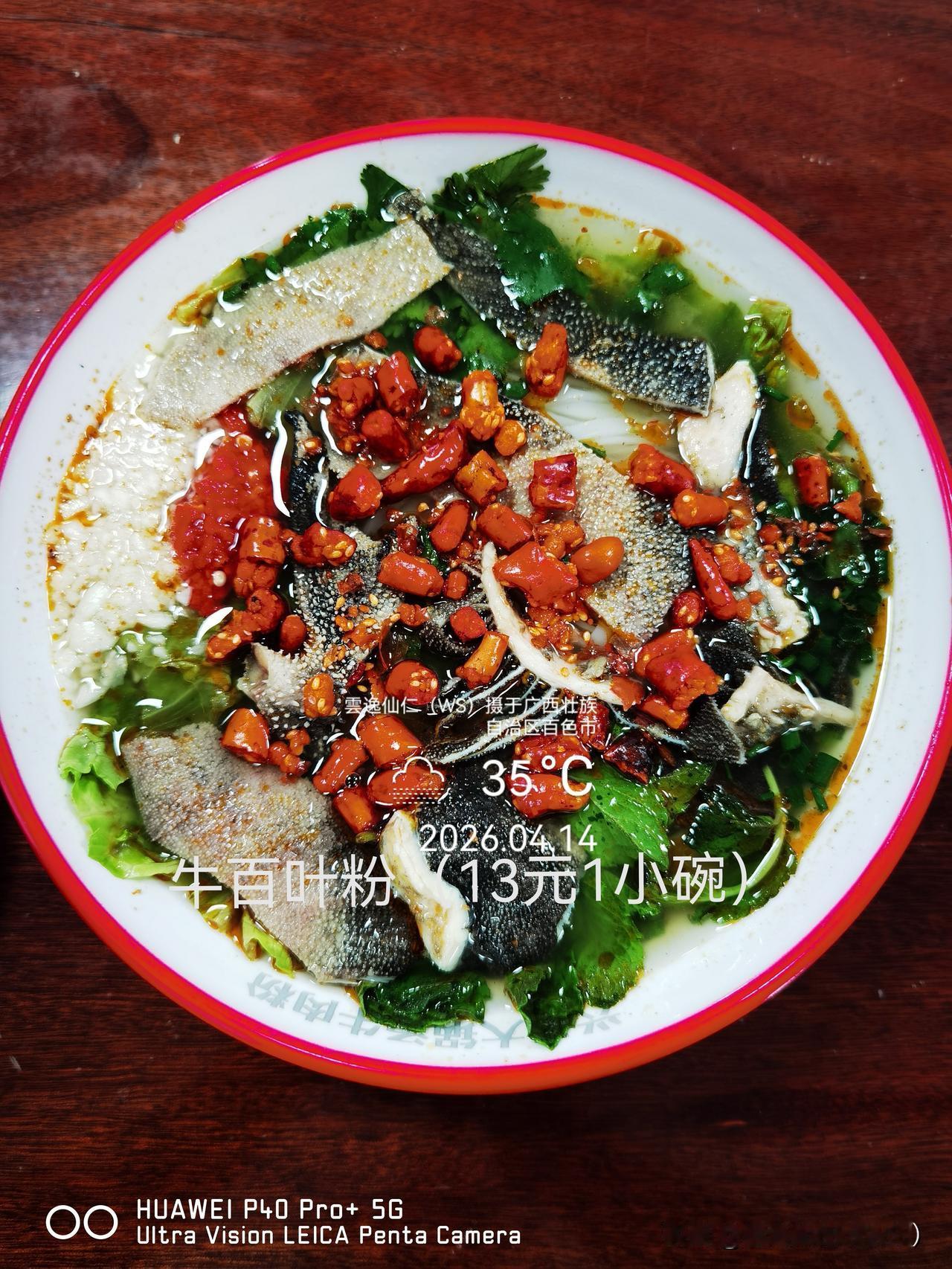 旅居生活记录(9505)广西壮族自治区百色市(190)品尝小吃50:牛百叶粉(13元1小碗) 。