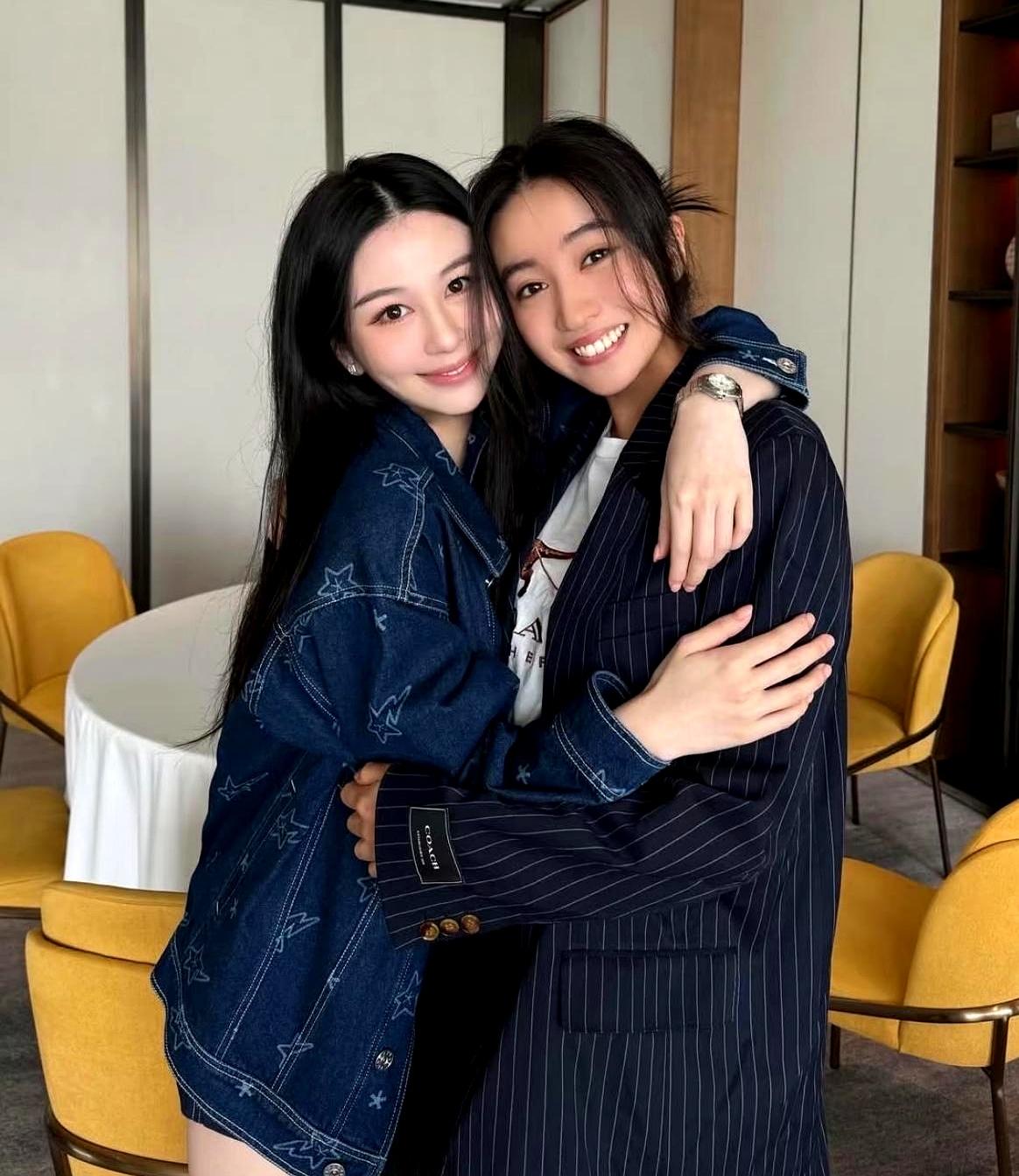 两个女儿一个甜一个阳光,站一块儿也特别有氛围感。