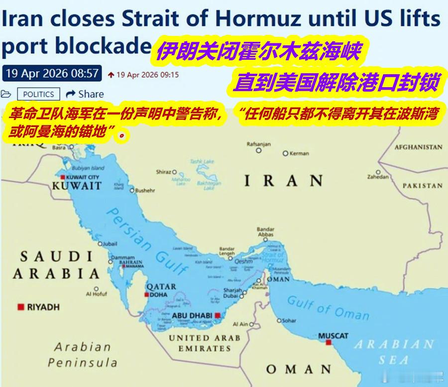 美伊临时停火只剩不到一天图1:特朗普警告伊朗不得搞“海峡勒索”;图2:而伊朗革命卫队立马扩大了“勒索”范围,从霍尔木兹海峡向南再延伸590公里,将阿曼湾也包进来了。简单说,革命卫队把“波斯湾+阿曼湾”一个面积相当于德国面积的海域都变成了其“射击区”。这等于在结构上制造的一个困境——即美国不解除对伊朗的封锁,停火谈判是不可能滴。