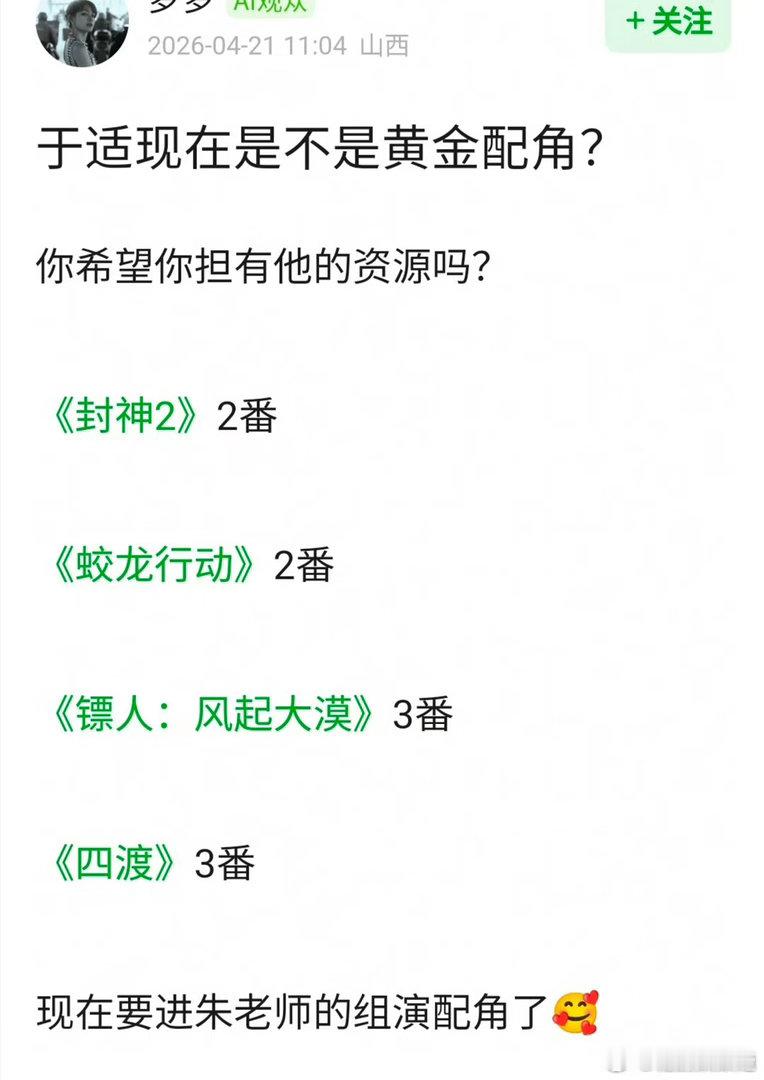 于适现在是黄金配角吗
