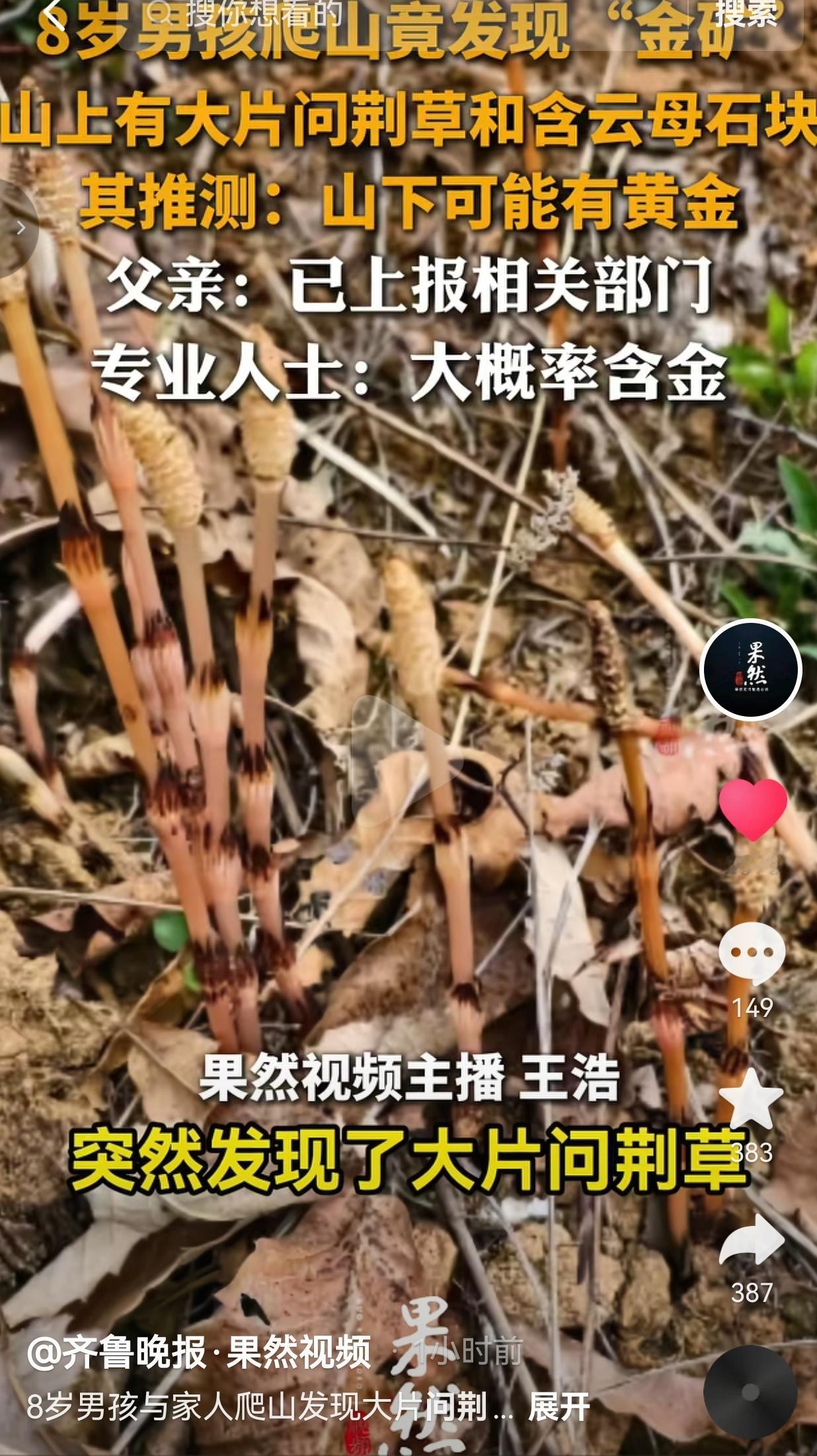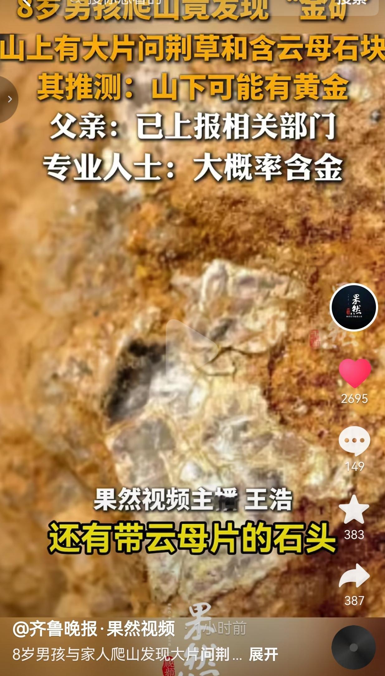 真服了!一个8岁小男孩,爬个山竟靠课本上学的知识点,发现了一处疑似含金矿的点位,大人路过都没当回事,偏偏让孩子一眼瞅了出来。