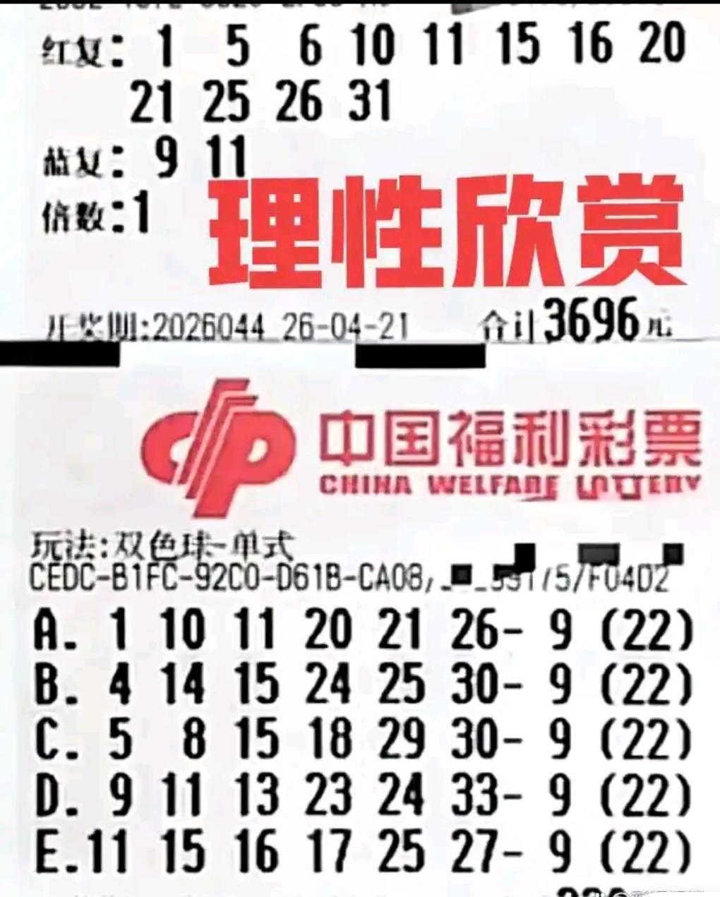 以上晒票仅供欣赏,彩民请理性购彩,切勿盲目跟风。