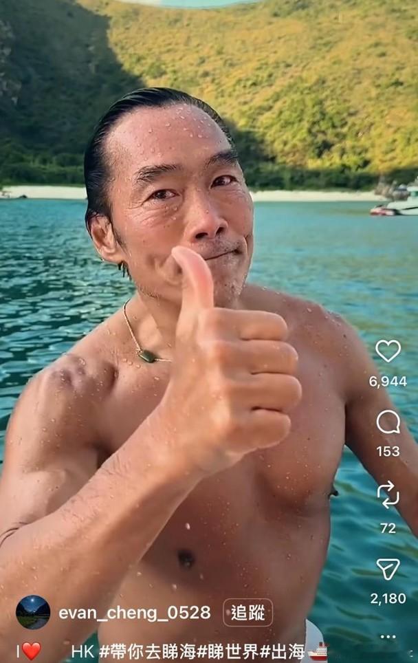 現年61歲的鄭浩南年前自爆與結婚20年的前妻鮑愛玲婚變,哀傷過後近年已積極工作接拍不少電影,並活躍於社交平台,近日他便上載出海暢泳片段,大騷其爆肌身材,胸肌及腹肌線條清晰分明,麒麟臂粗壯厚實,難怪網民紛紛大讚他凍齡有術,簡直是「逆生長」世一。