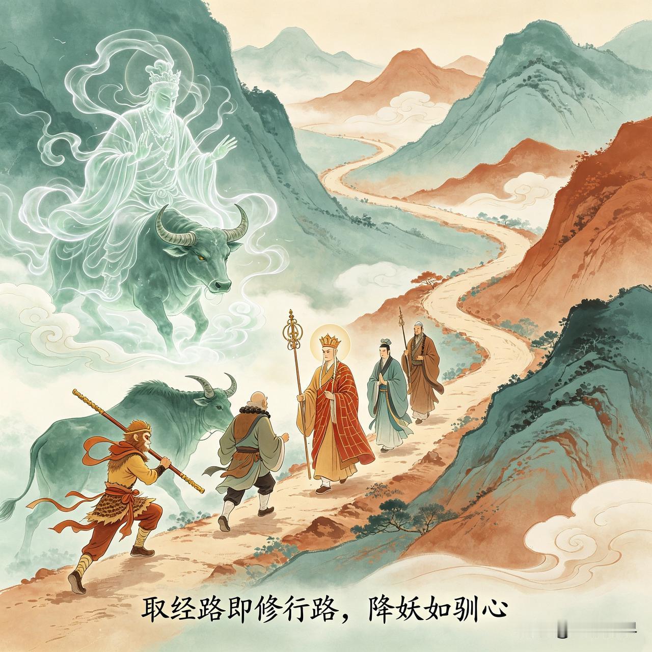 取经路即人生修行路,降伏各路妖魔实则驯服内心欲望,完成自我的蜕变与成长。