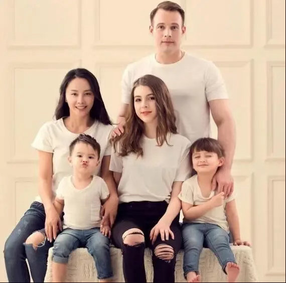 马雅舒有一对混血儿女,女儿漂亮,儿子是个小帅哥,而且长相都偏东方,但现任老公跟前