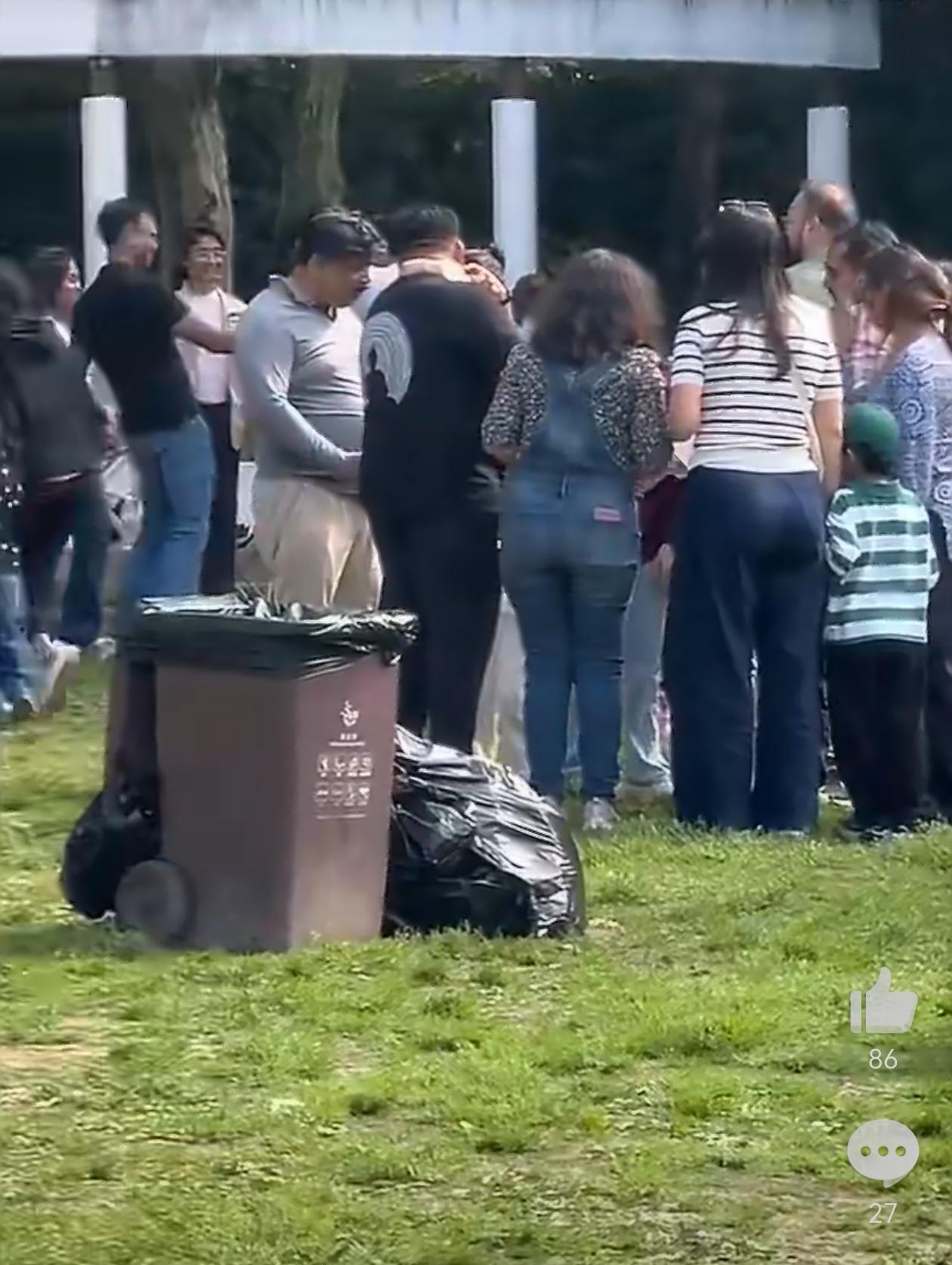 公园里上演奇葩一幕。一对父女和一对母子在公园散步,男孩见对面小女孩正笑眯眯看着他