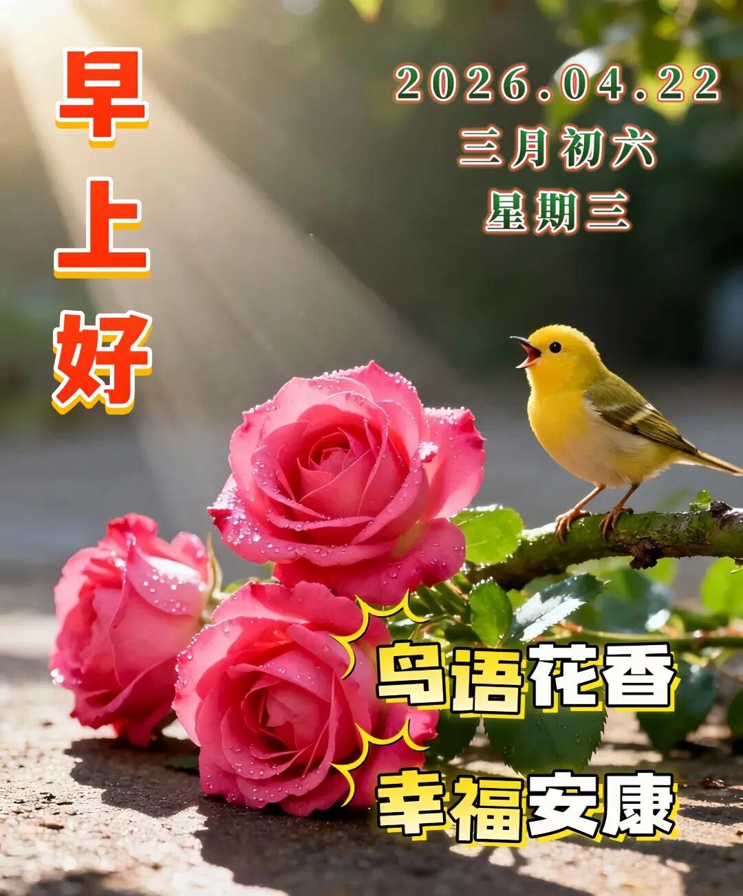 🌞友谊是一棵树,永远常青;🍎问候是一句话,永远健康;🎉让我们在这百花盛开的季节,🌺拥抱温暖,拥抱美丽,拥抱春天!💐大家早上好