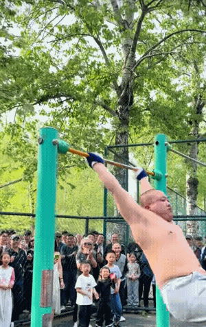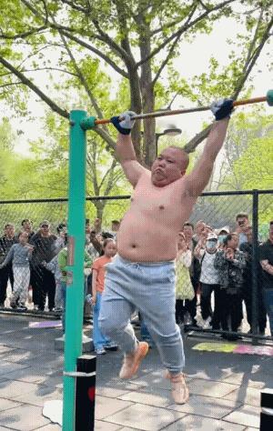 不过我看到的公园的单杠上的说明,体重是限制在一百公斤以内的,这样的体重还是少做这样的动作,惯性太大,单杠也受不了。安全第一。
