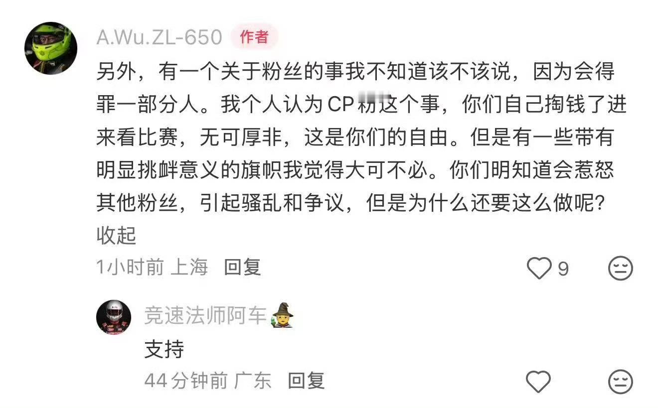 车手也忍不住出来说赛场红黄粉的事了
