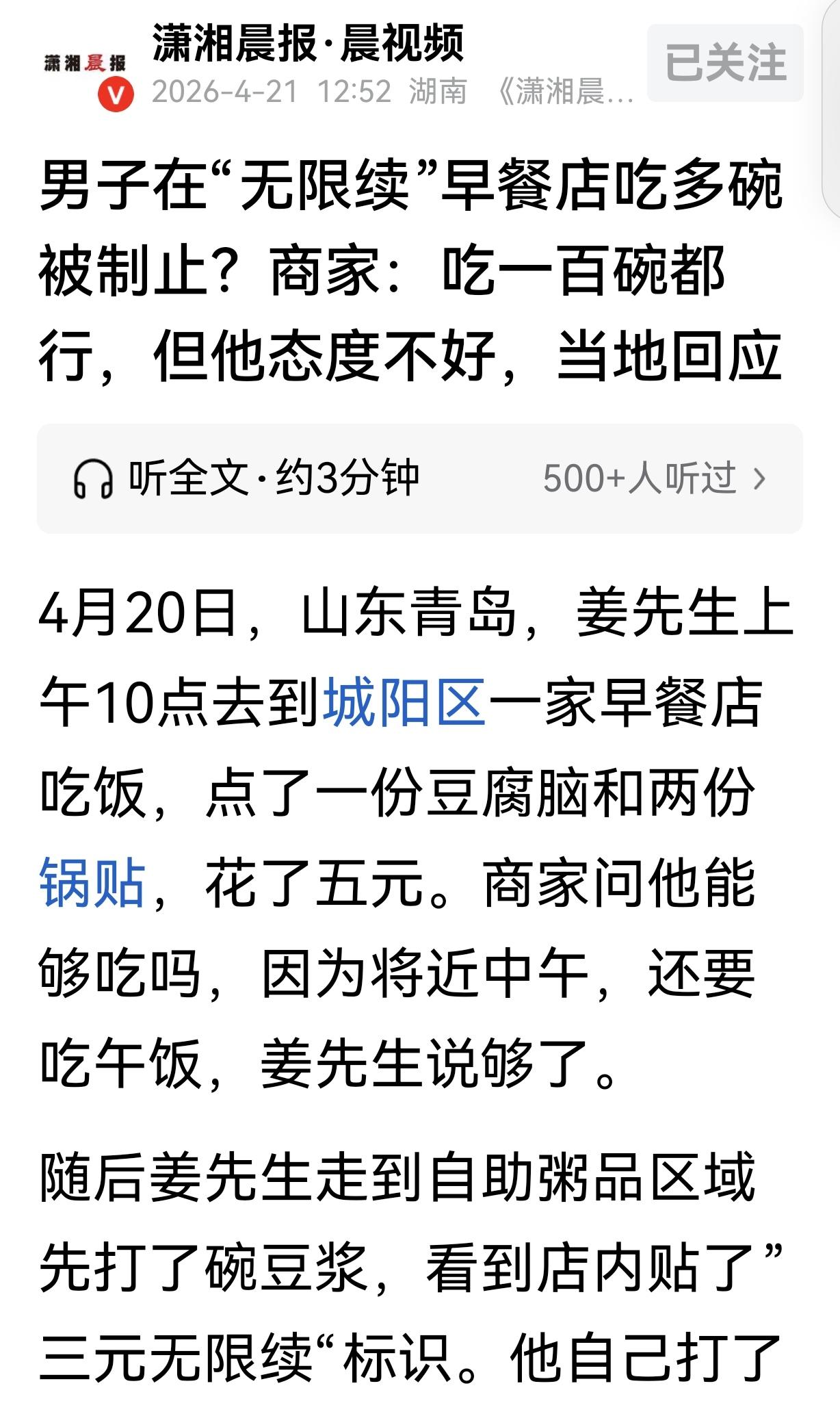顾客这边也没必要钻牛角尖,总共就花了5块钱,光喝粥都喝了好几碗,真要较真规则,也得先问问,是不是自己没理解对活动要求,上来就吵架报警,纯粹是给自己添堵。