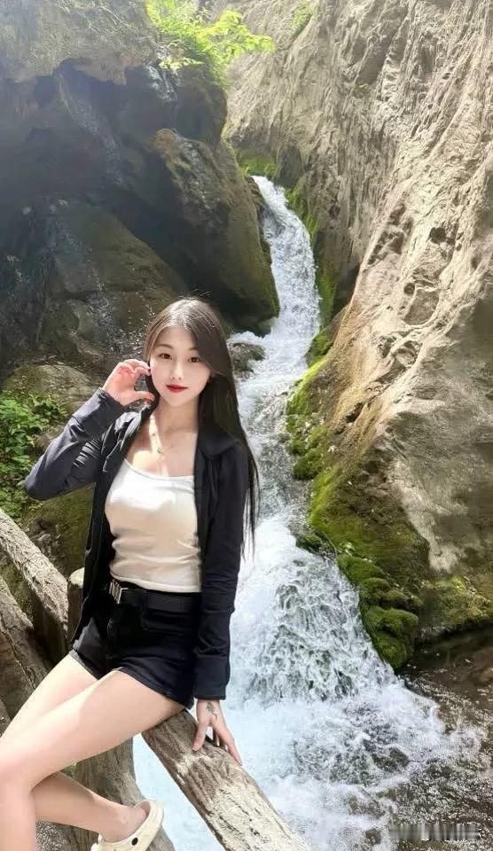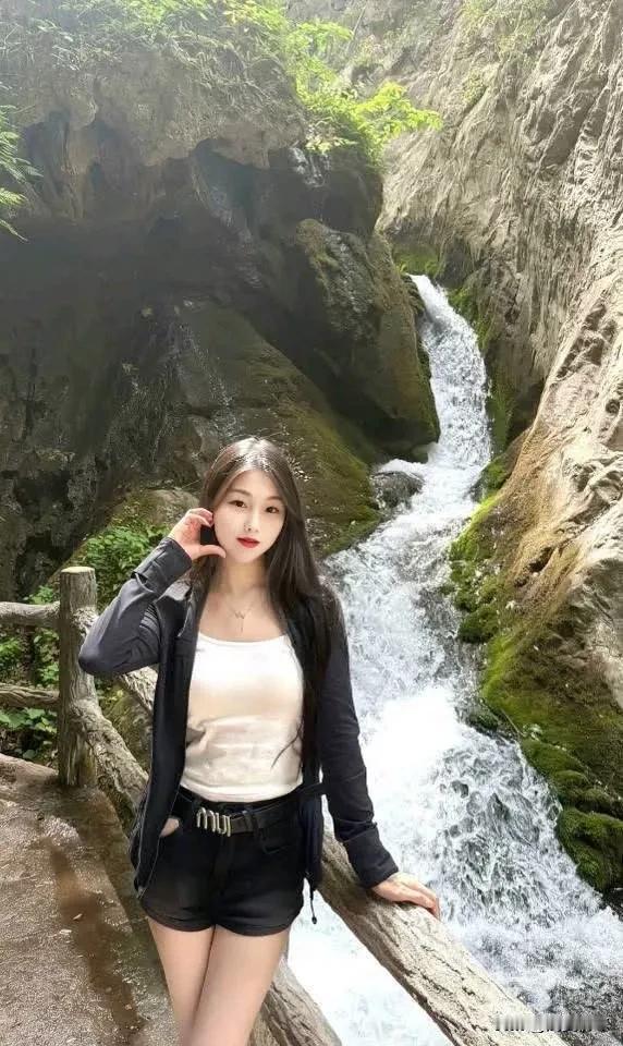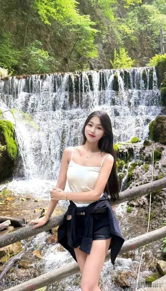 在瀑布前打卡,感受大自然的清新与美好!🌿