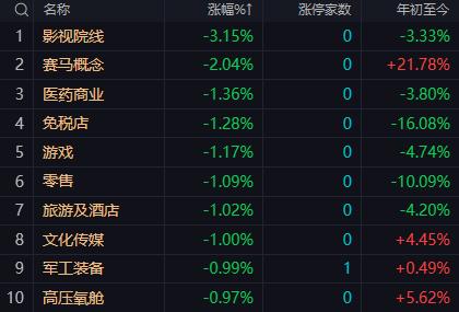 板块方面,CPO、光纤、金属铟等概念涨幅居前;影视院线、医药商业、游戏等概念跌幅居前。